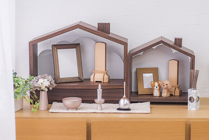 最近は 「ペット専用のミニ仏壇」「メモリアルステージ」 も増えており、