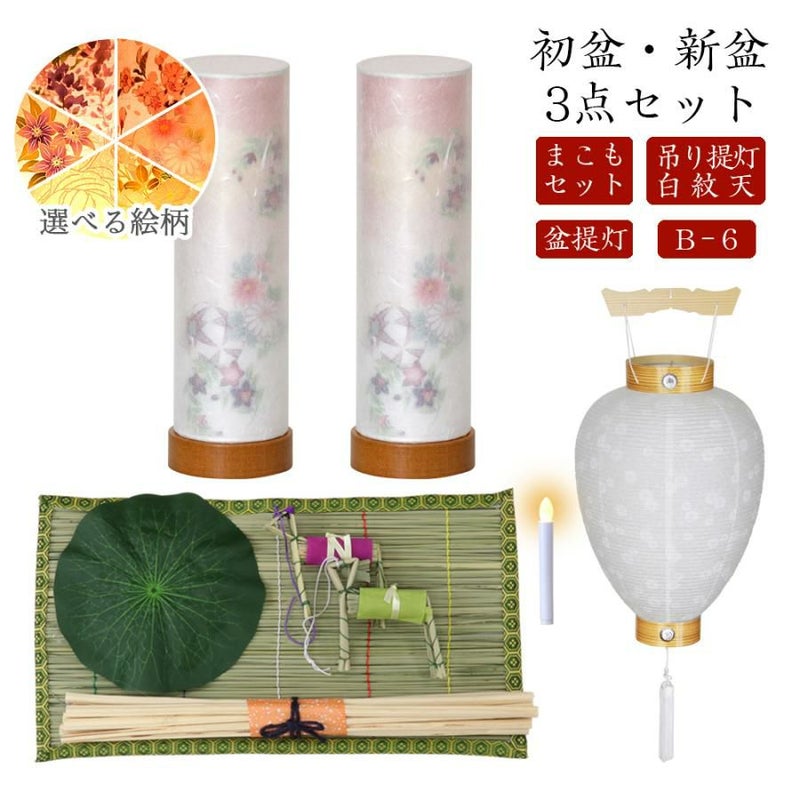 【B-6】(3点セット 白紋天+盆提灯 選べる6柄+まこもセット)