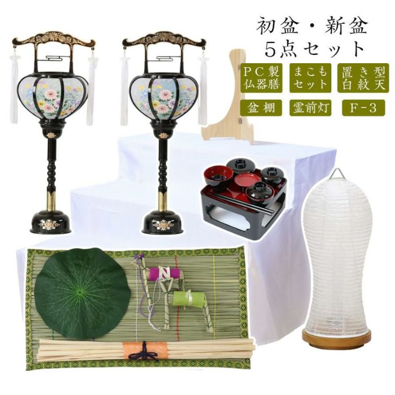 【F-5】(5点セット 白紋天+盆提灯 No.2920+まこもセット+PC仏器膳+盆棚)