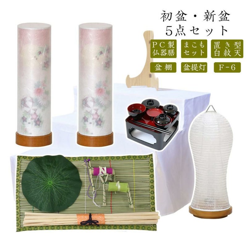 【F-6】(5点セット 白紋天+盆提灯 No.2921+まこもセット+PC仏器膳+盆棚)