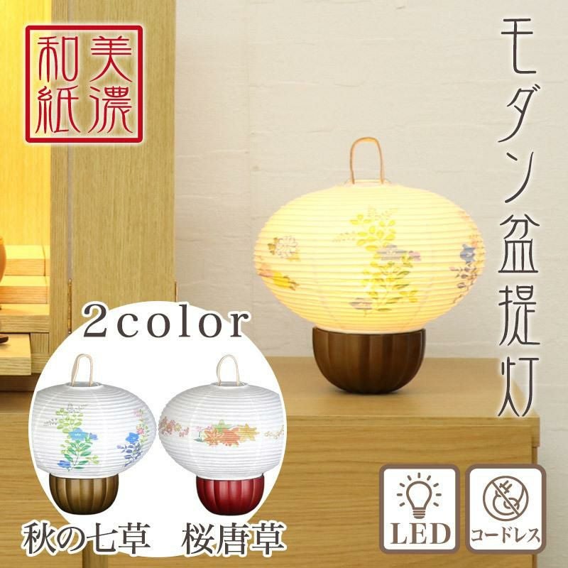 盆提灯 美濃和紙 大内 秋の七草・桜唐草 m37621 m37622 LED コードレス / 盆ちょうちん 灯燈 初盆 スタンドライト 照明 ミニサイズ 新盆 モダン 小さい