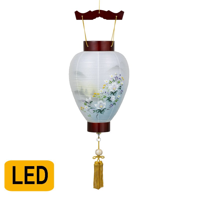 盆提灯 サクラ色 風鎮付 No.7864 (岐阜提灯 LED 外絹張二重)/盆ちょうちん 灯燈 初盆 岐阜提灯 日本製 国産 ギフト モダン 吊り下げ