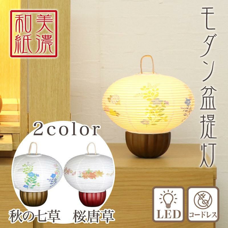 他の画像を見る モダン 盆提灯 国産品 美濃和紙 盆ちょうちん 灯燈 初盆 スタンドライト 照明 和室 和風 ルームライト 紙ランプ ミニサイズ 卓上 盆提灯 美濃和紙 大内 秋の七草・桜唐草 m37621 m37622 LED コードレス / 盆ちょうちん 灯燈 初盆 スタンドライト 照明 ミニサイズ 新盆 モダン 小さい 価格 ¥ 15,370 税込 詳細を見る お気に入りに登録する (0)