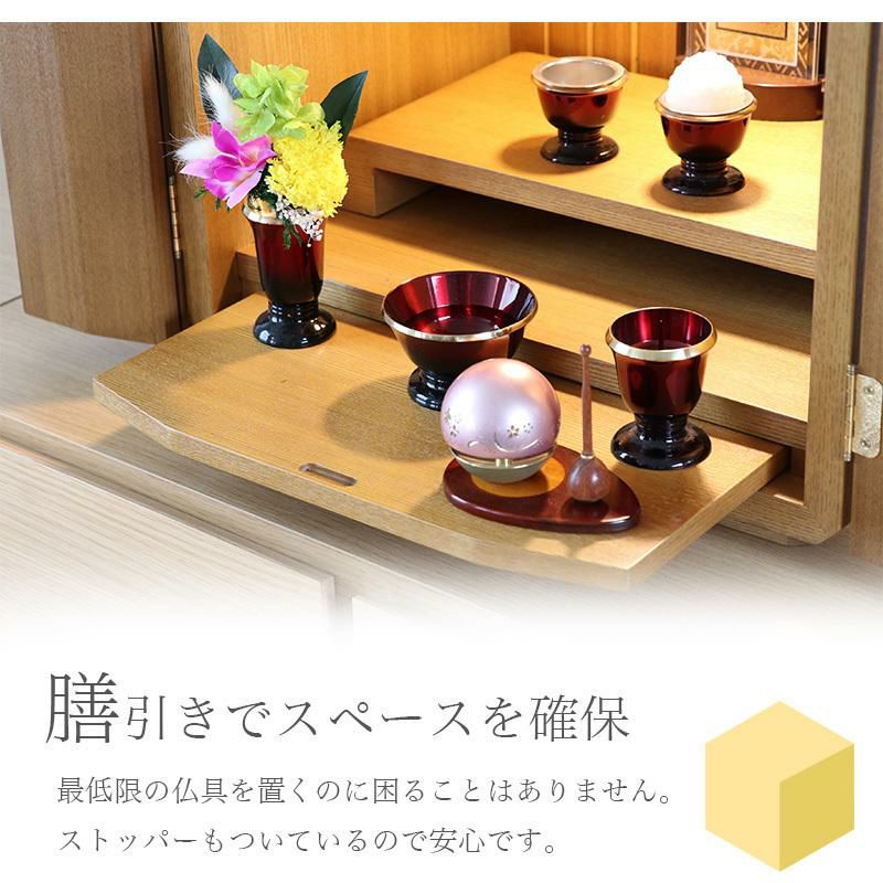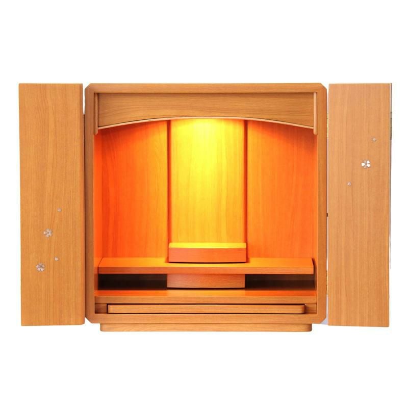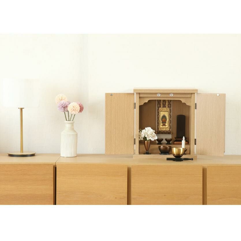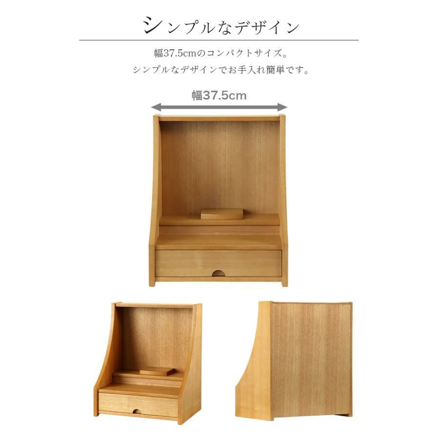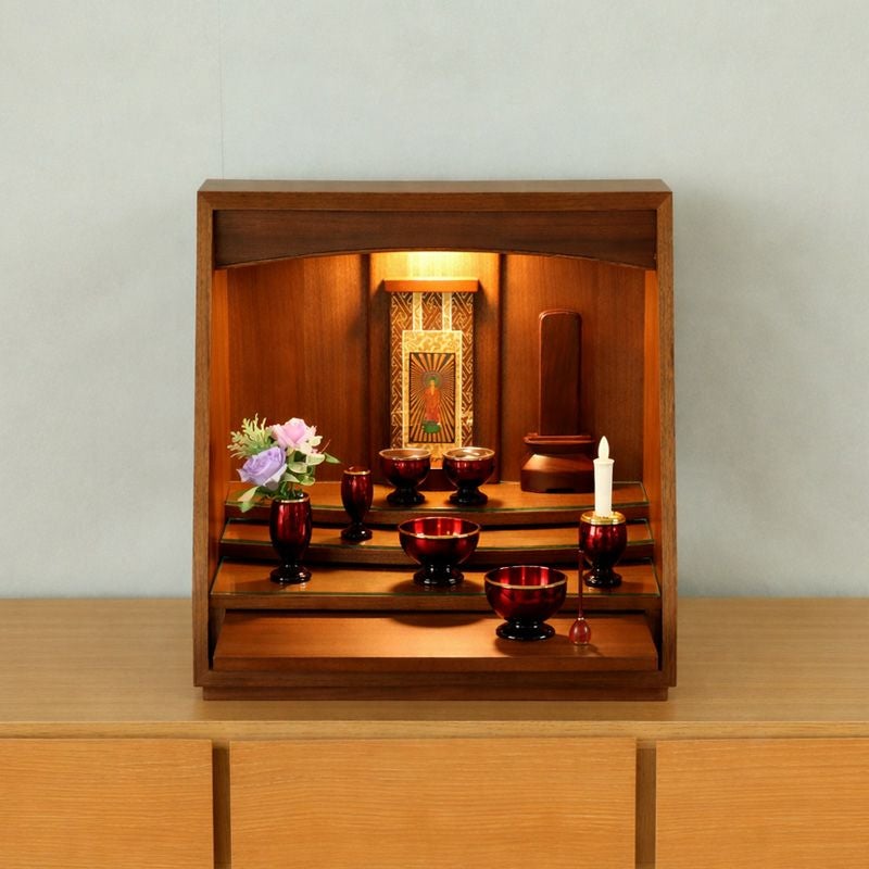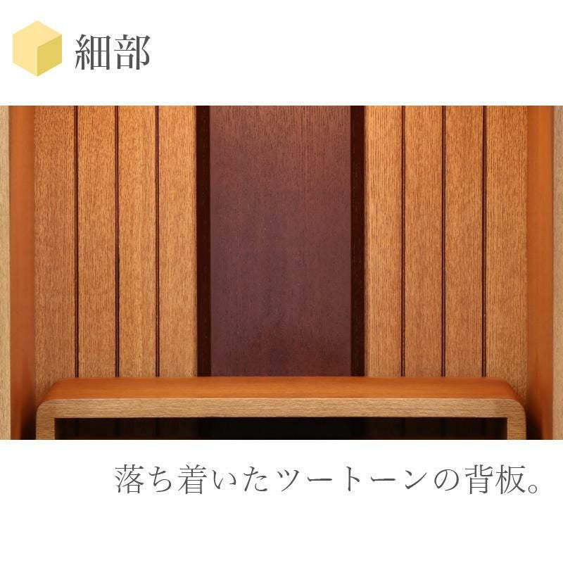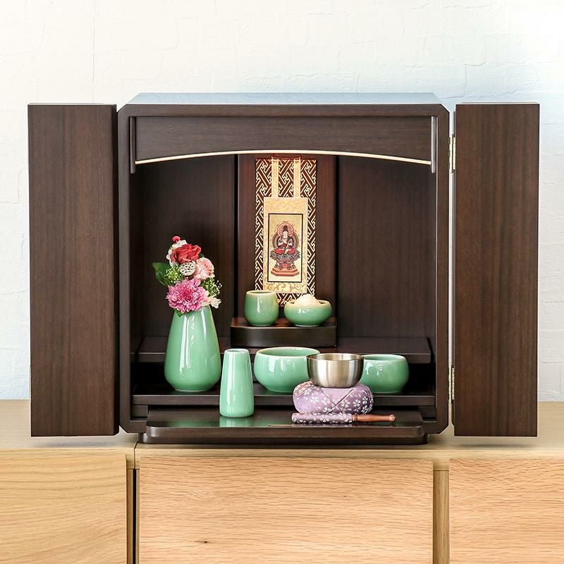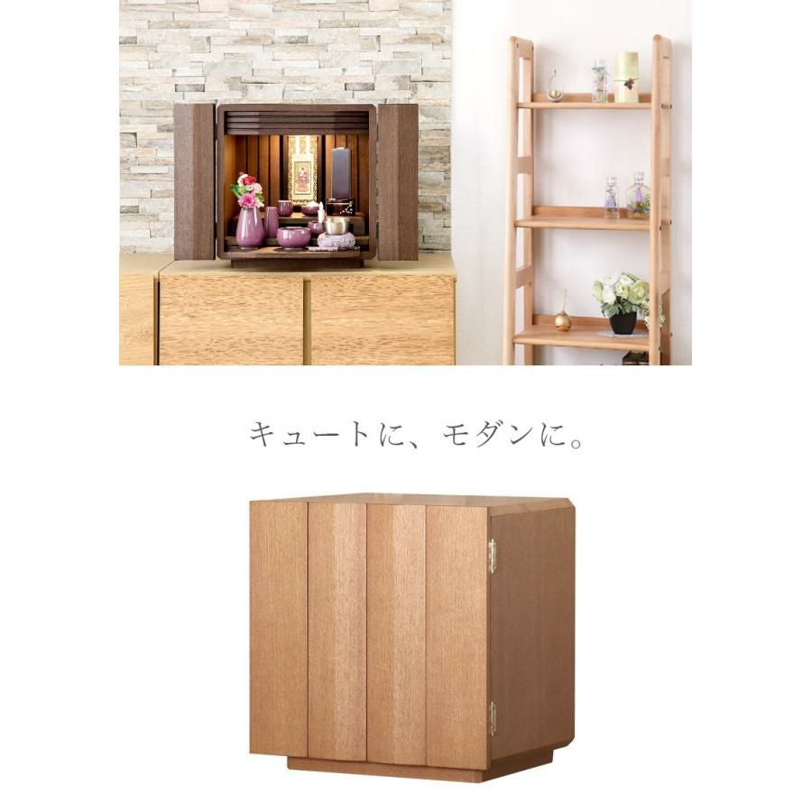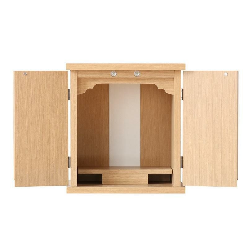 扉のないシンプルなデザインのお仏壇です。大きなお仏壇を置く場所がない方に、リビングの一角でおまいりしたい方に、お仏壇らしくないデザインをお探しの方におすすめです。