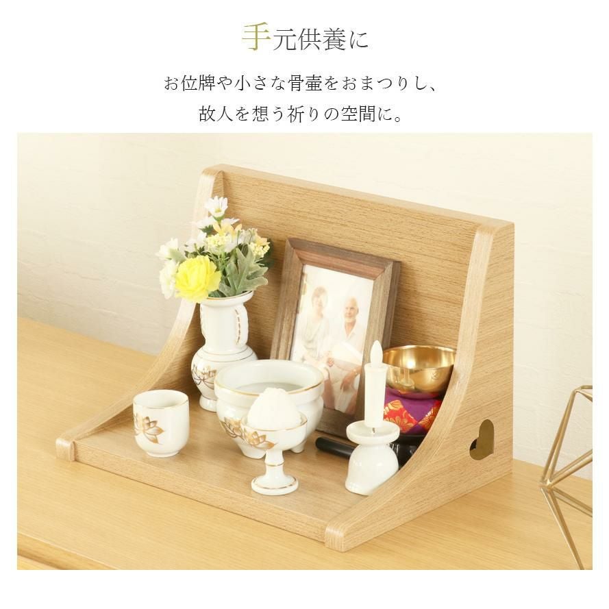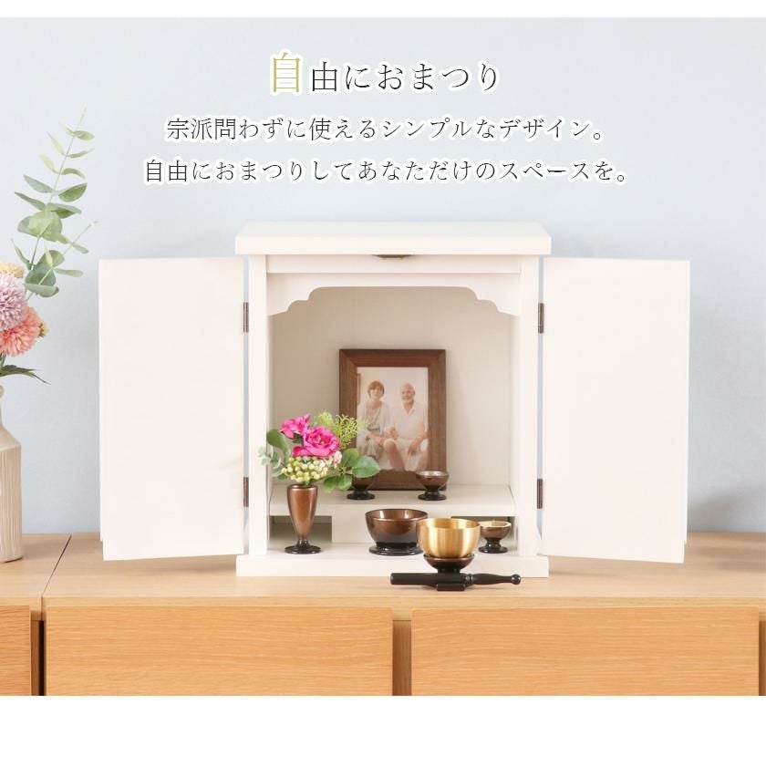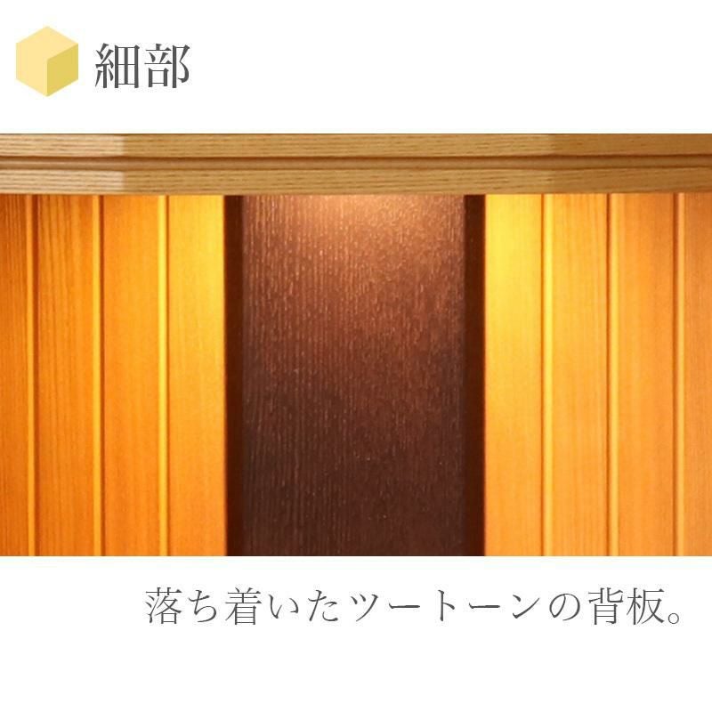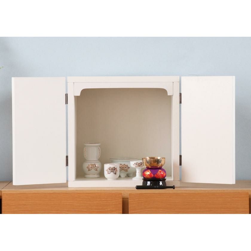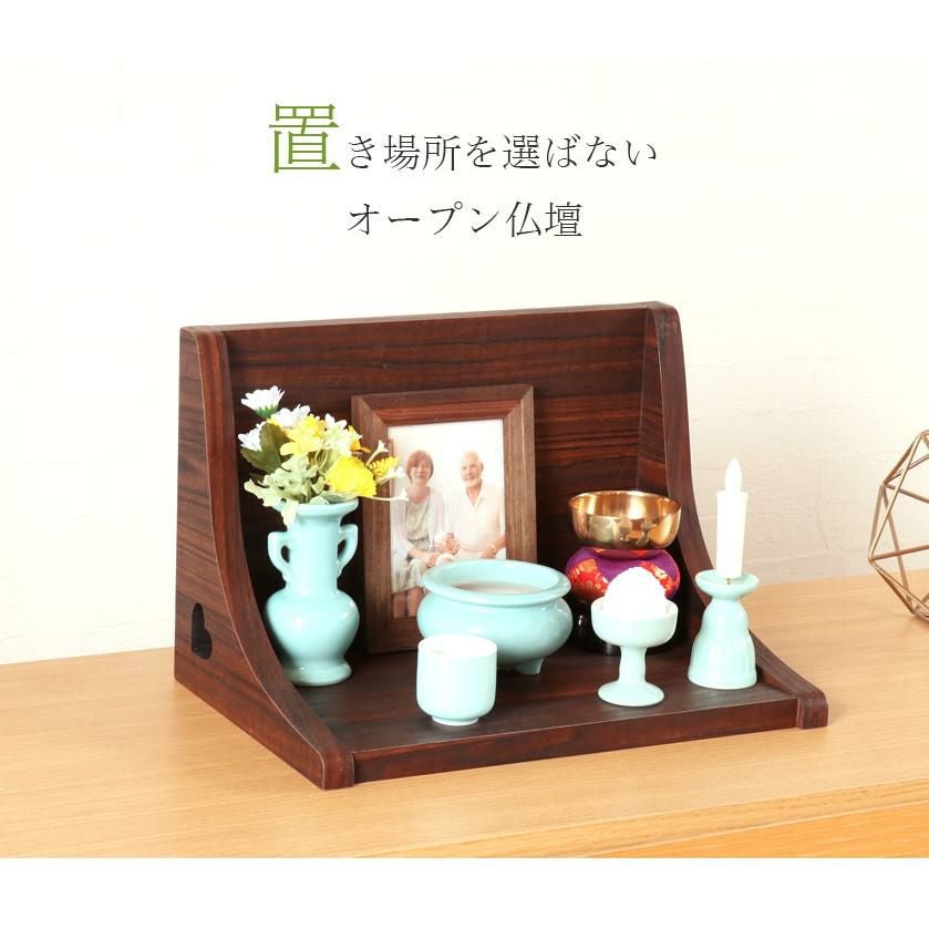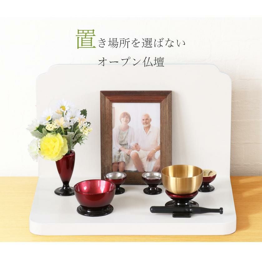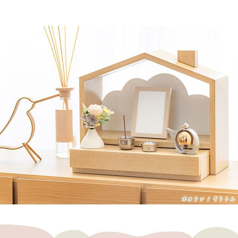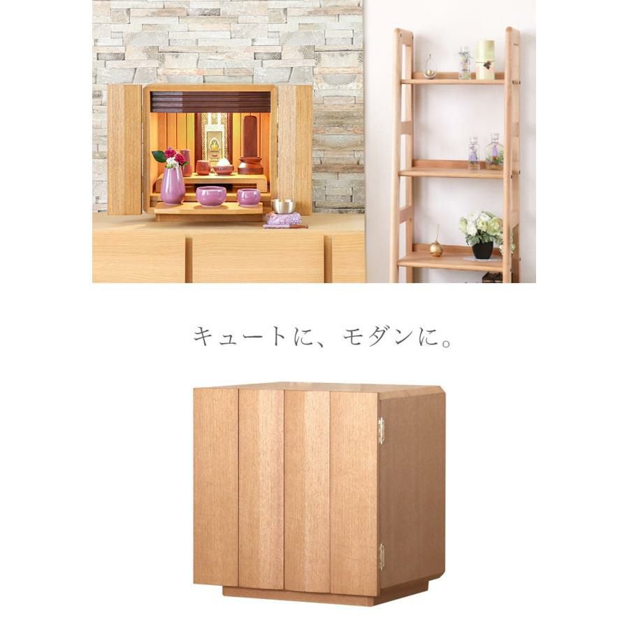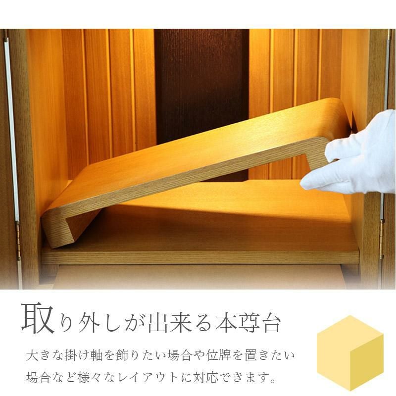 扉のないシンプルなデザインのお仏壇です。大きなお仏壇を置く場所がない方に、リビングの一角でおまいりしたい方に、お仏壇らしくないデザインをお探しの方におすすめです。