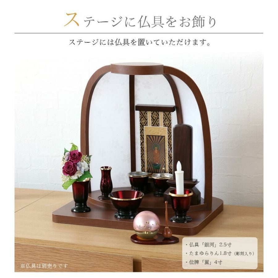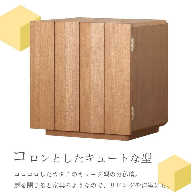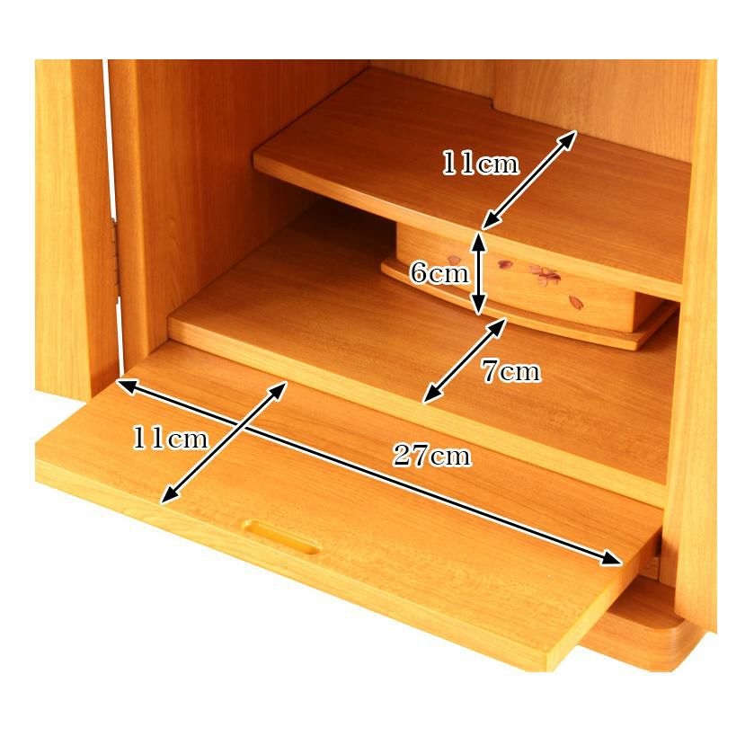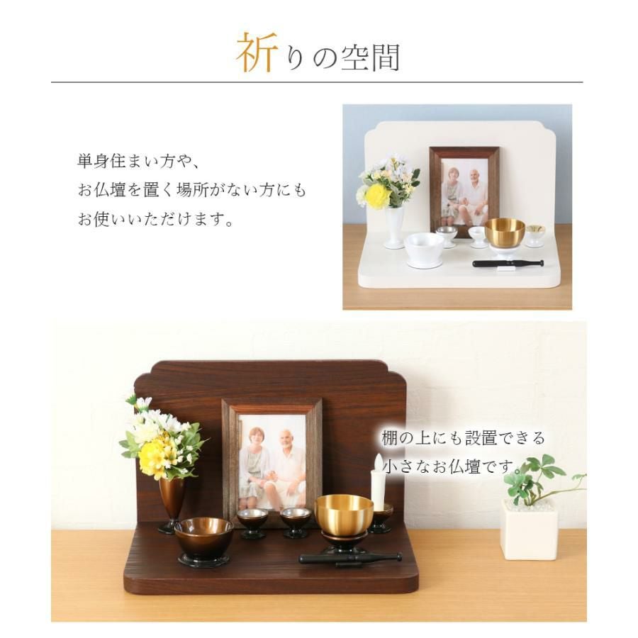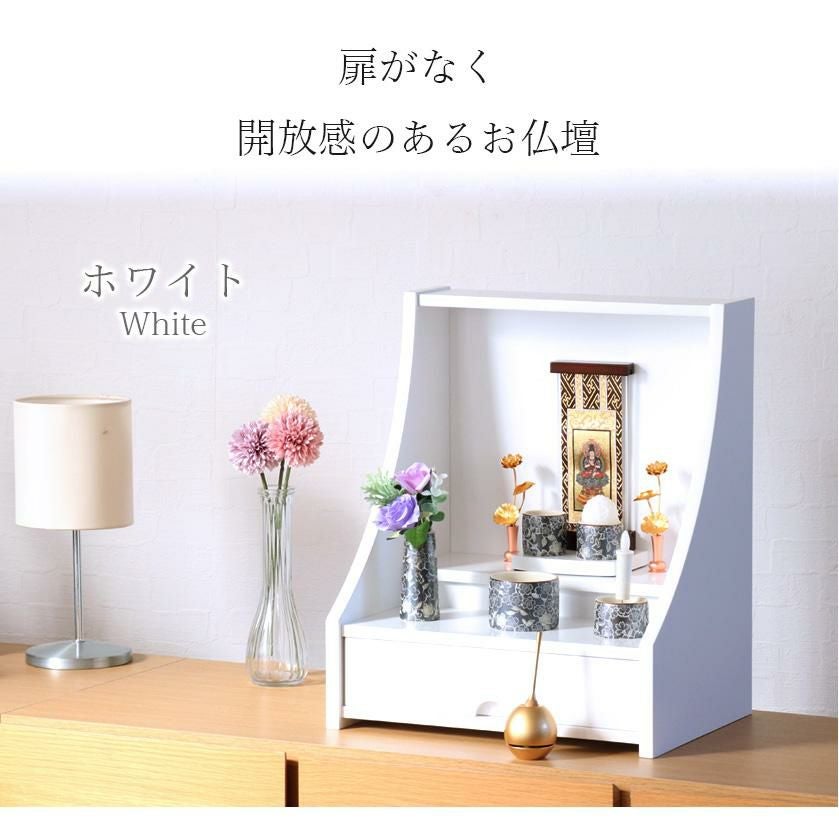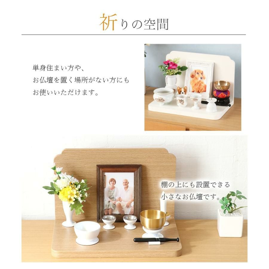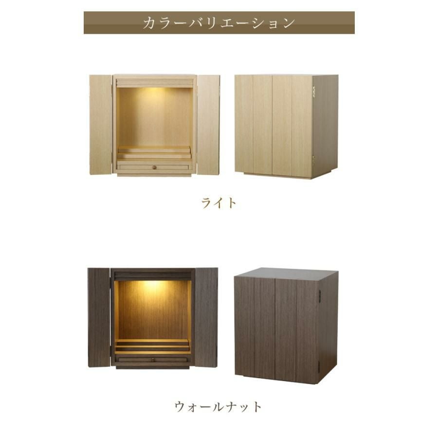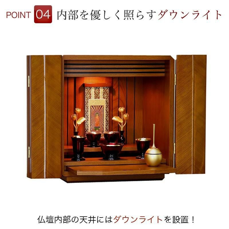 扉のないシンプルなデザインのお仏壇です。大きなお仏壇を置く場所がない方に、リビングの一角でおまいりしたい方に、お仏壇らしくないデザインをお探しの方におすすめです。