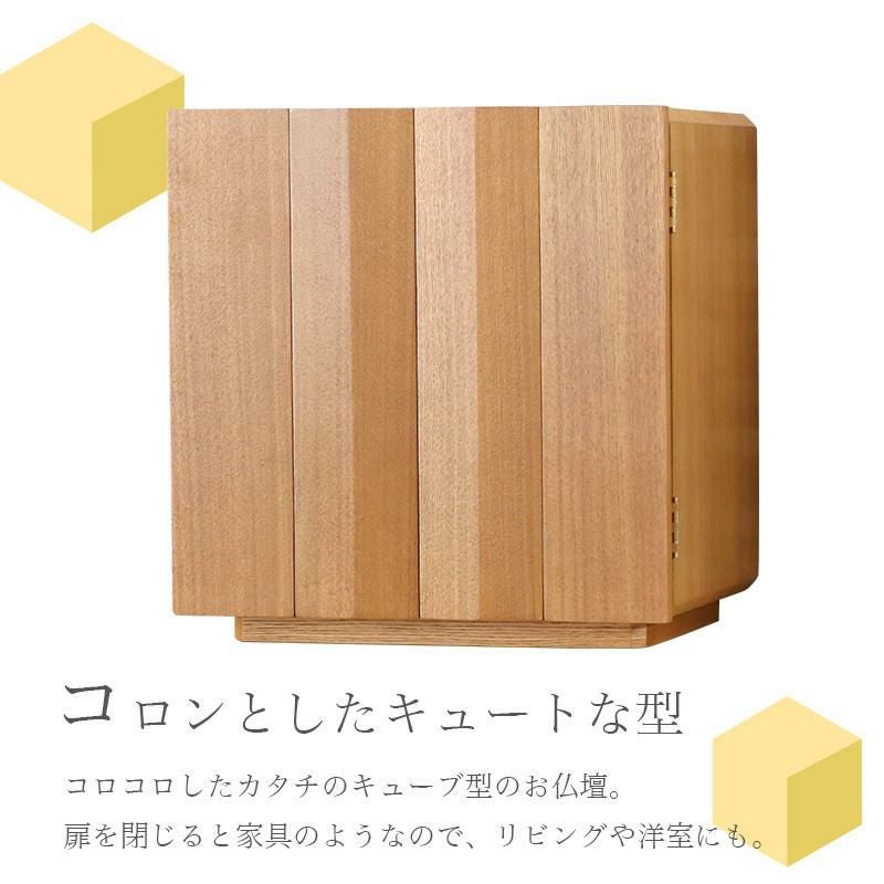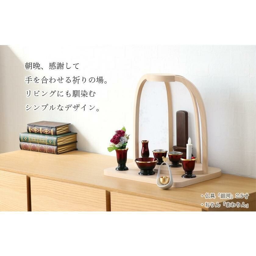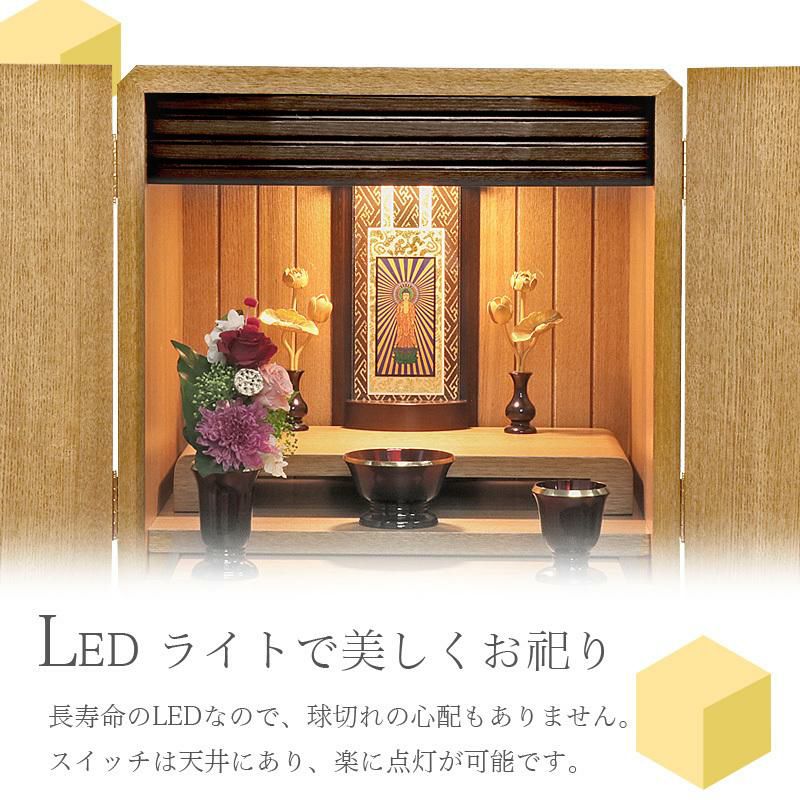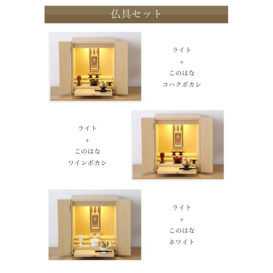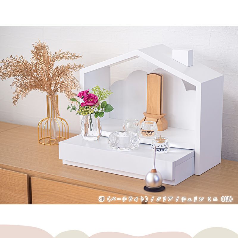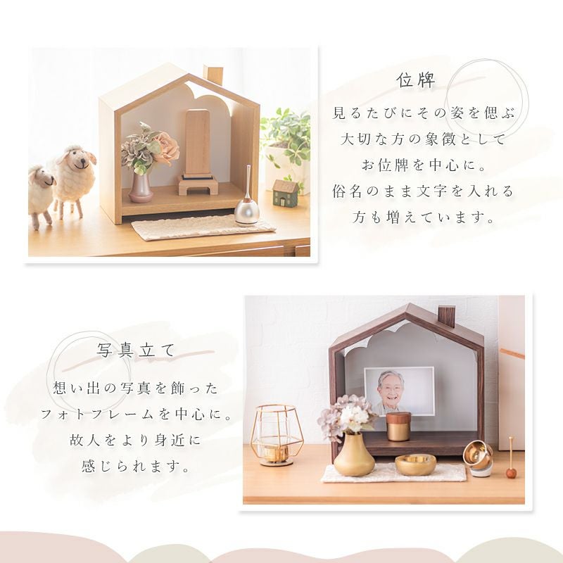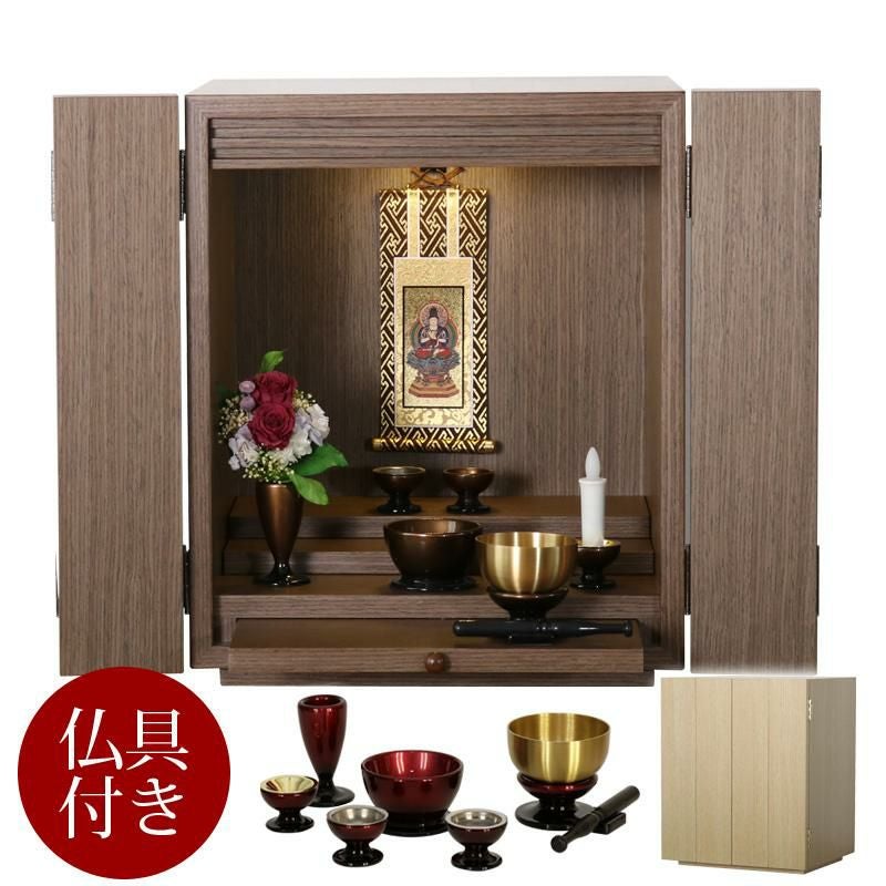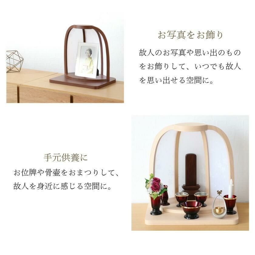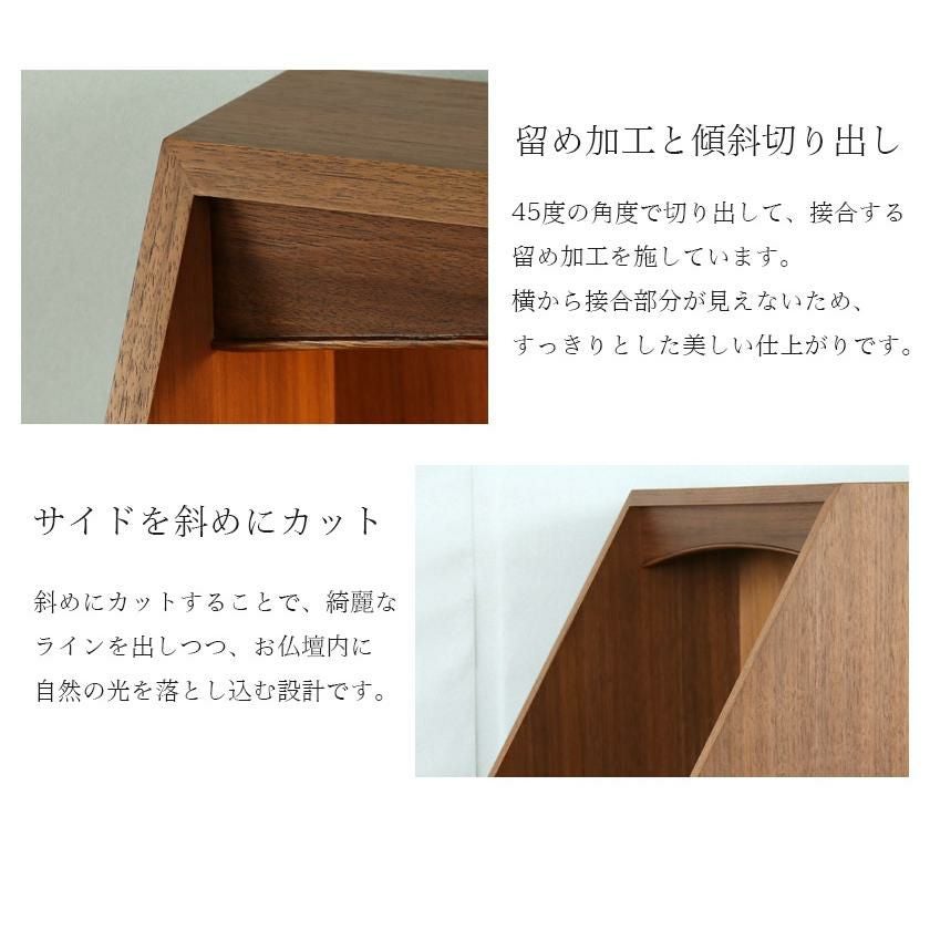 扉のないシンプルなデザインのお仏壇です。大きなお仏壇を置く場所がない方に、リビングの一角でおまいりしたい方に、お仏壇らしくないデザインをお探しの方におすすめです。