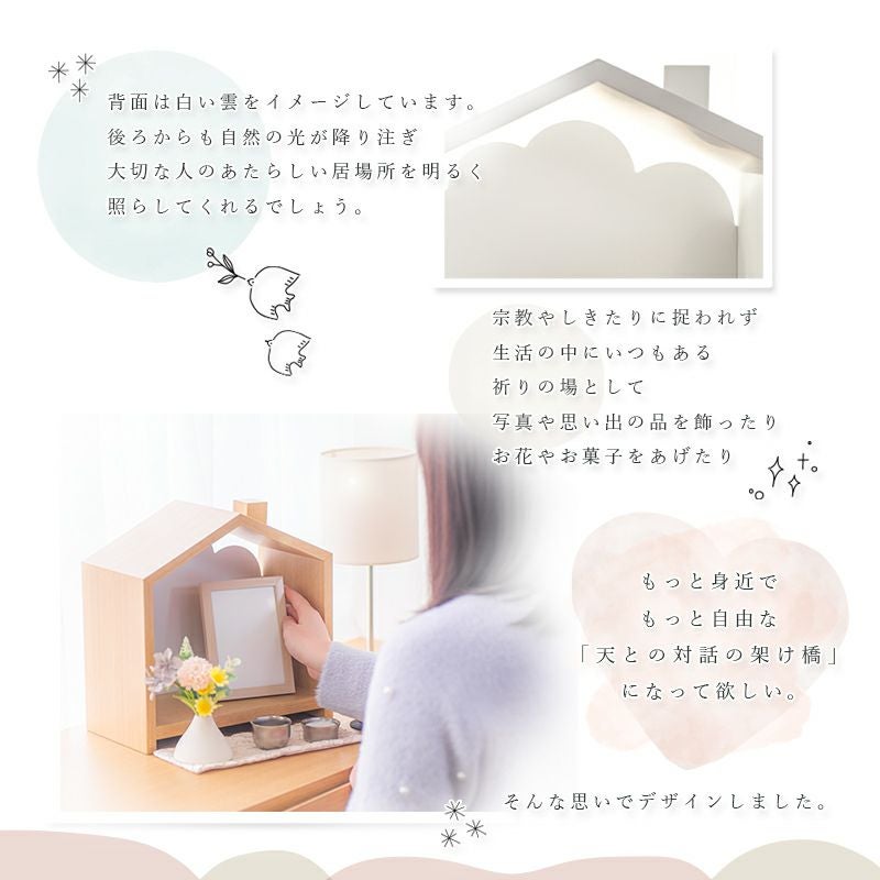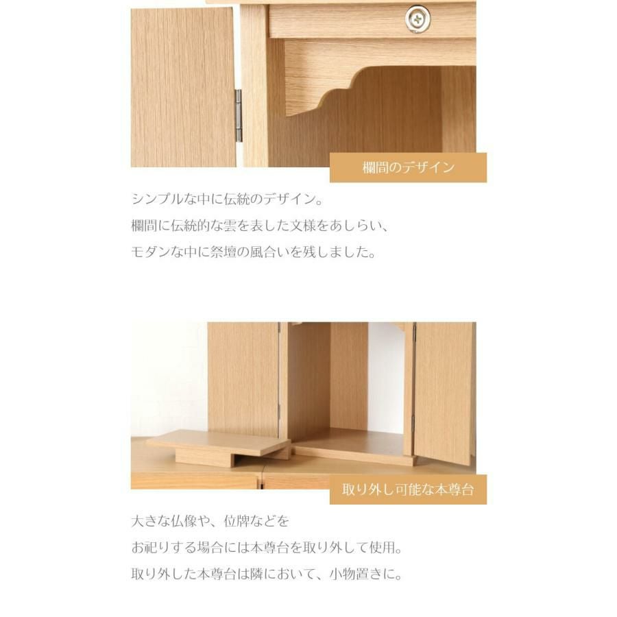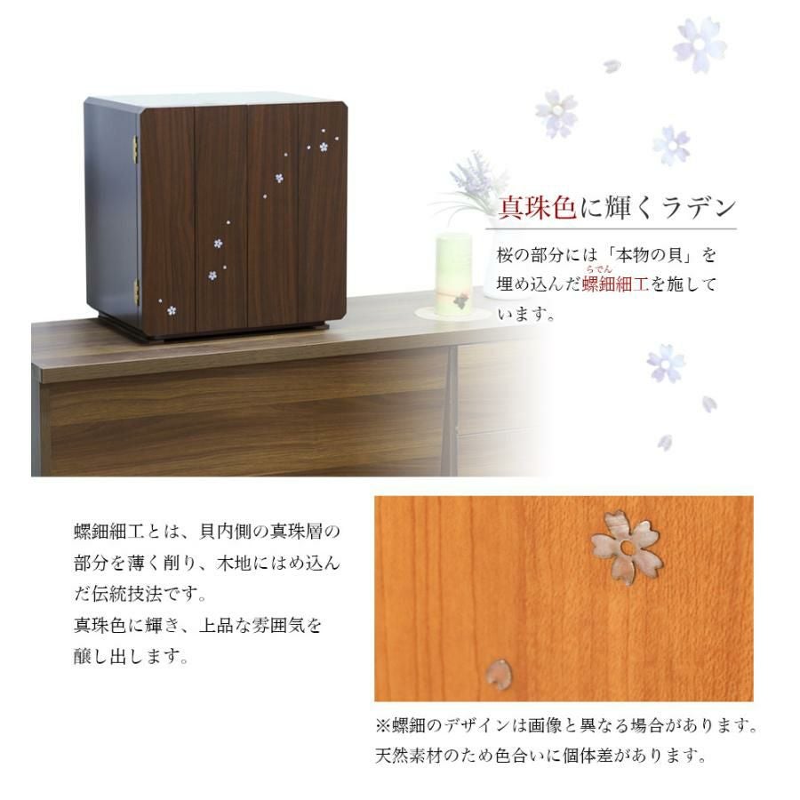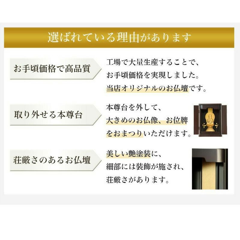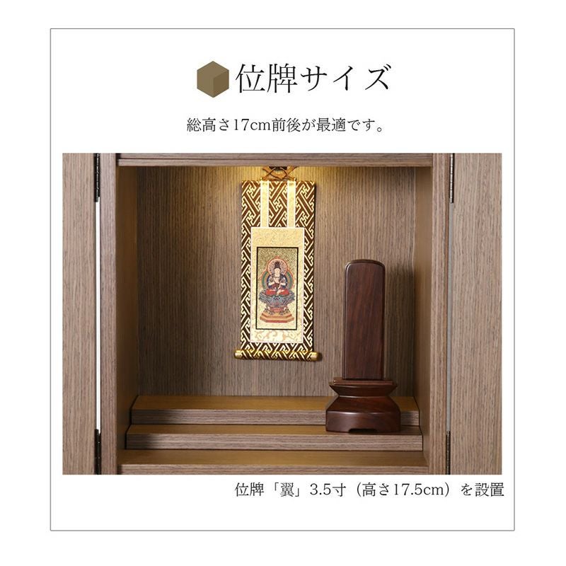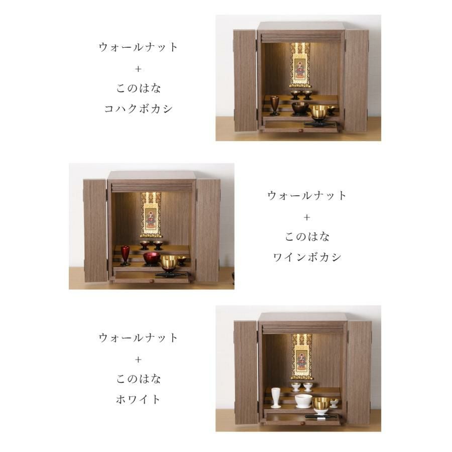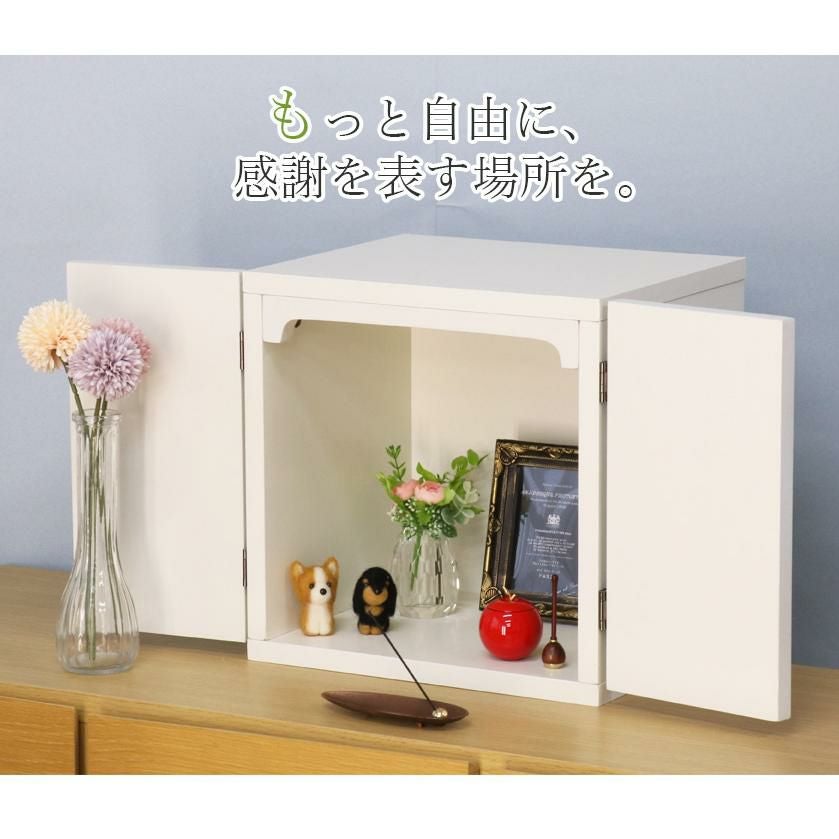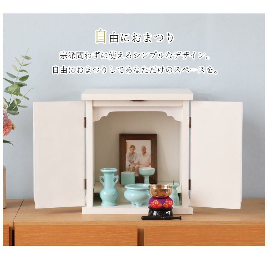 扉のないシンプルなデザインのお仏壇です。大きなお仏壇を置く場所がない方に、リビングの一角でおまいりしたい方に、お仏壇らしくないデザインをお探しの方におすすめです。