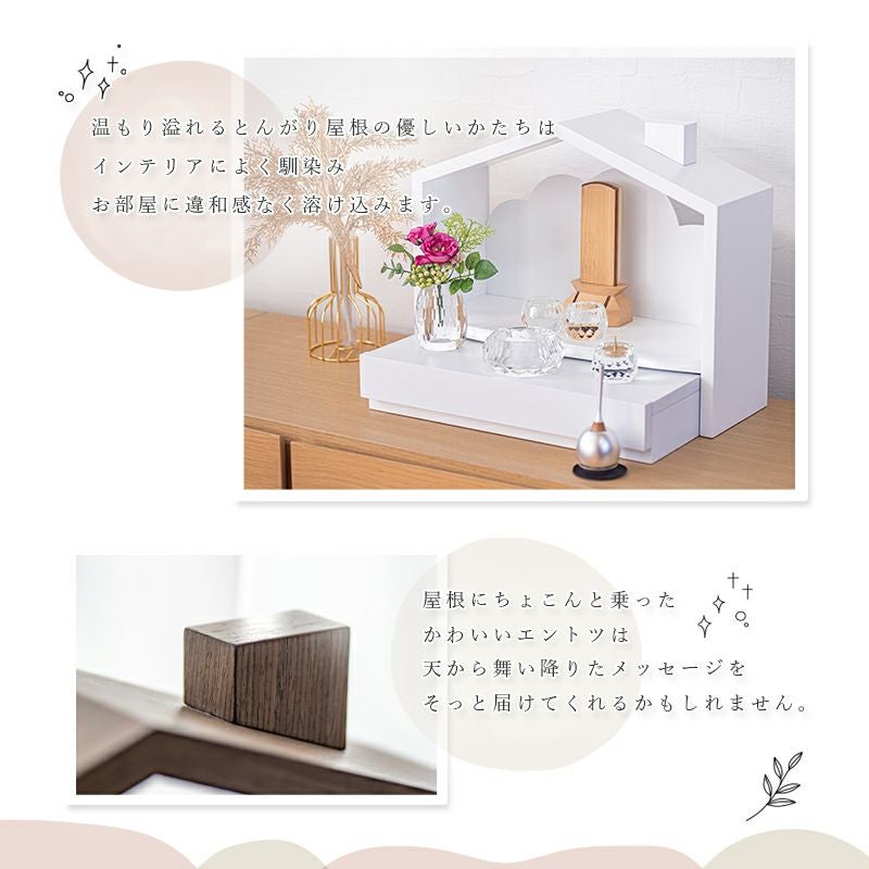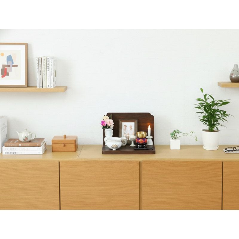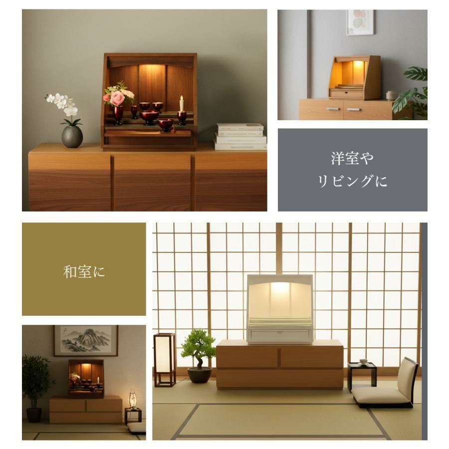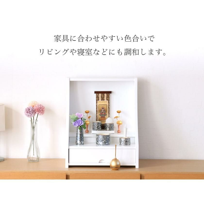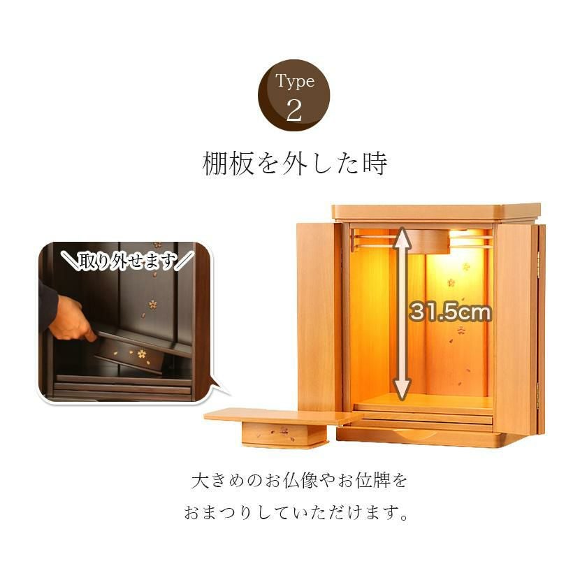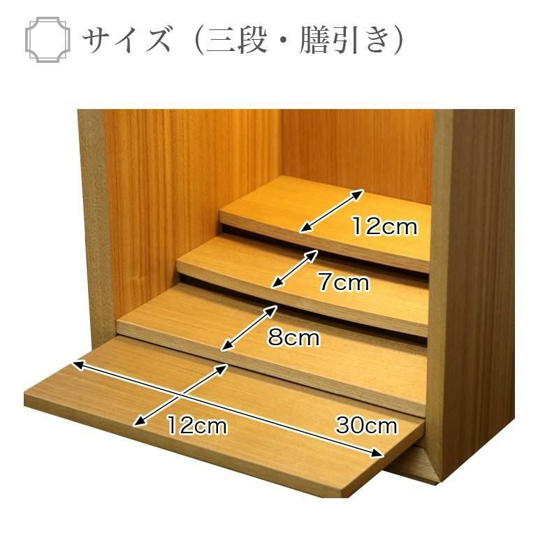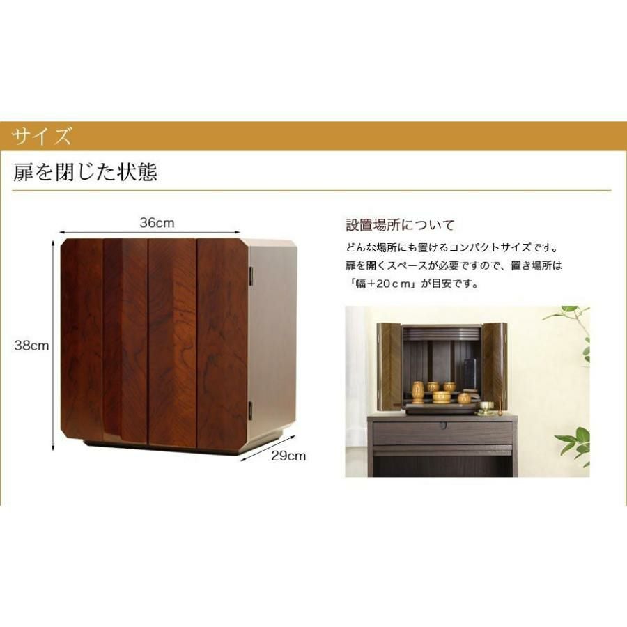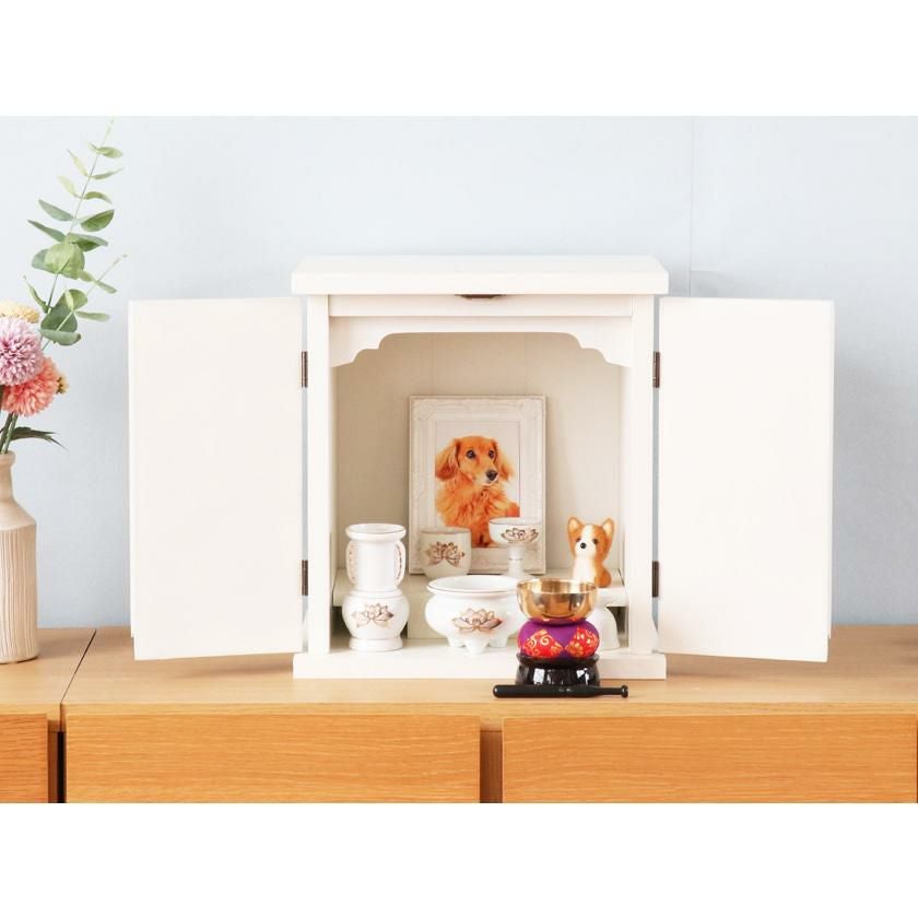 扉のないシンプルなデザインのお仏壇です。大きなお仏壇を置く場所がない方に、リビングの一角でおまいりしたい方に、お仏壇らしくないデザインをお探しの方におすすめです。