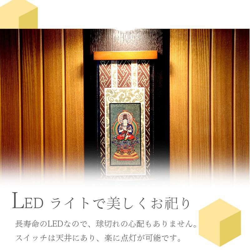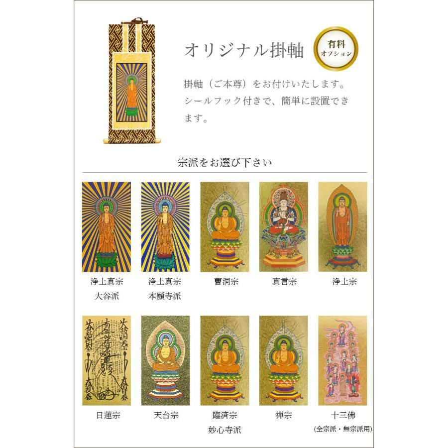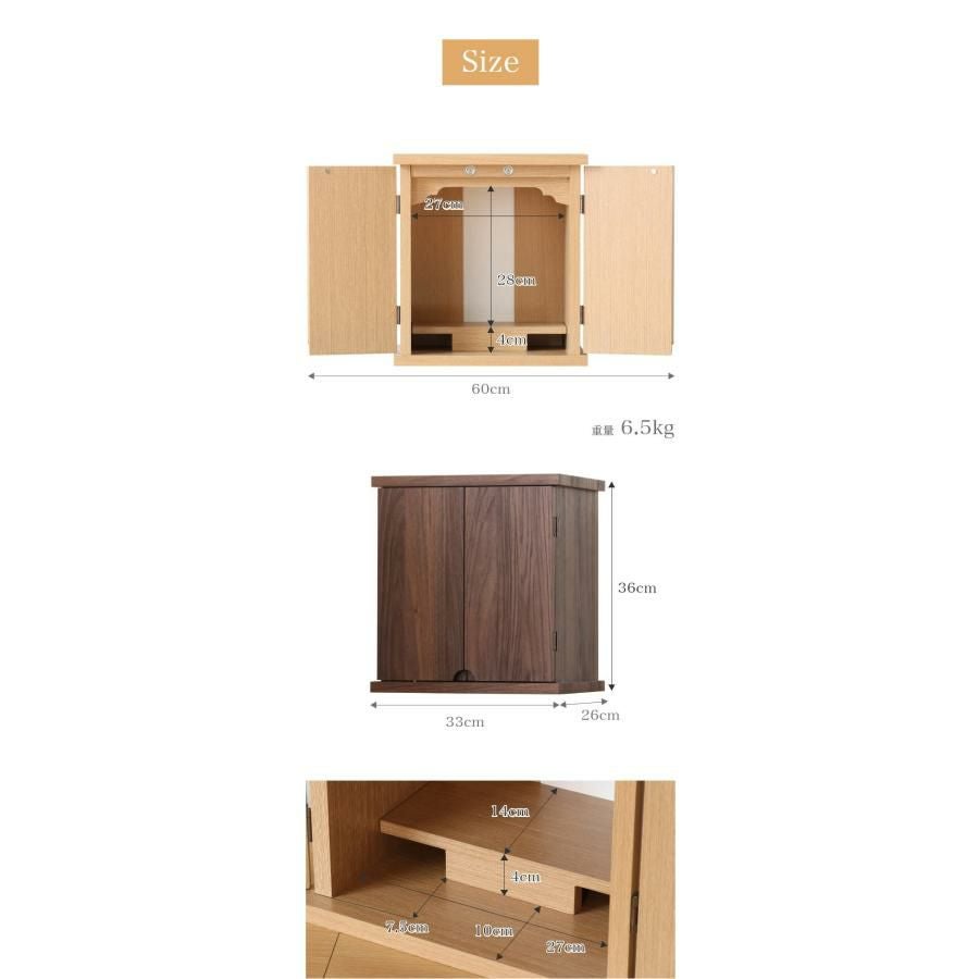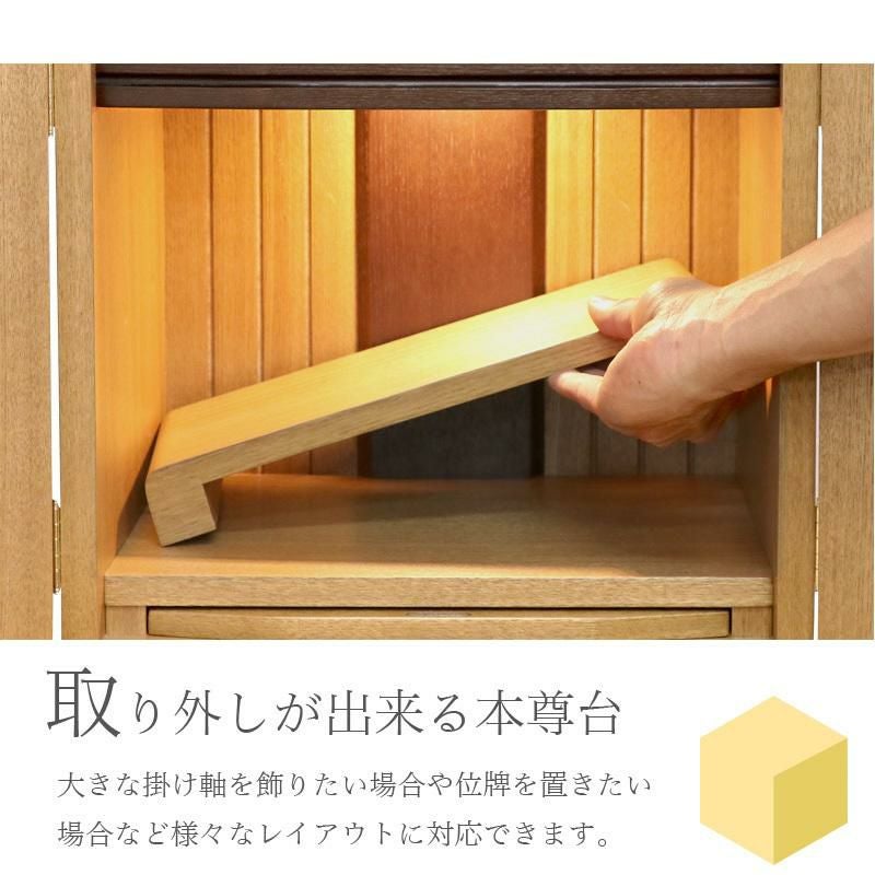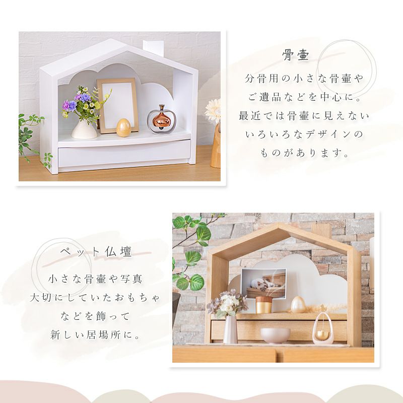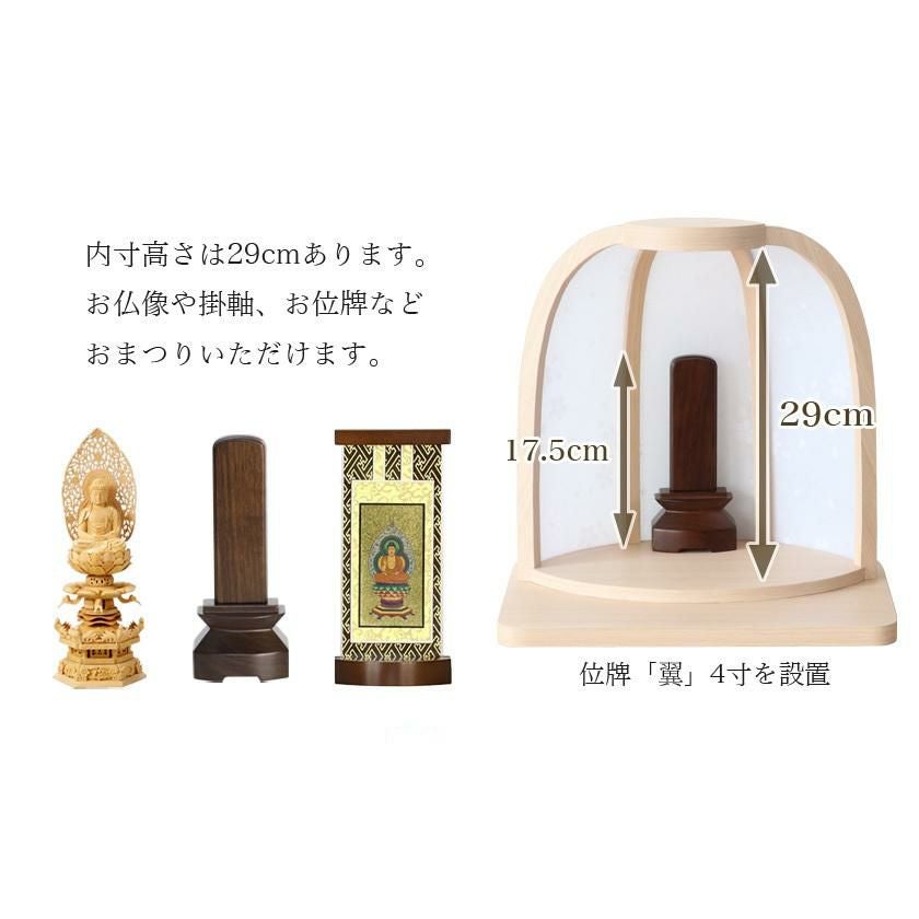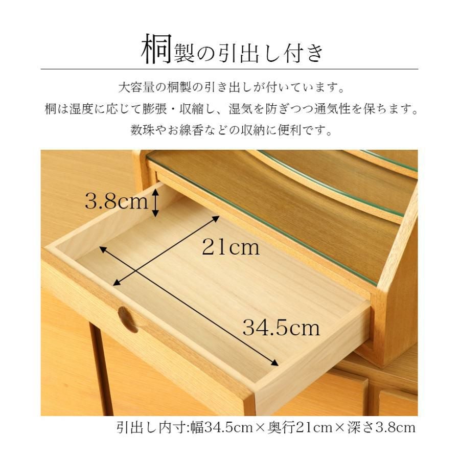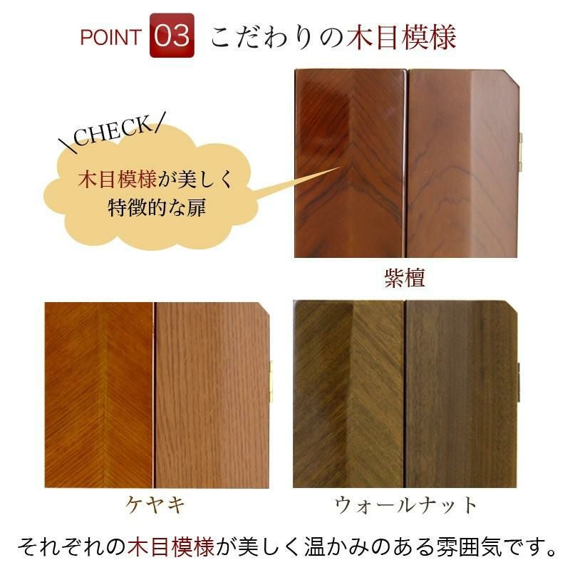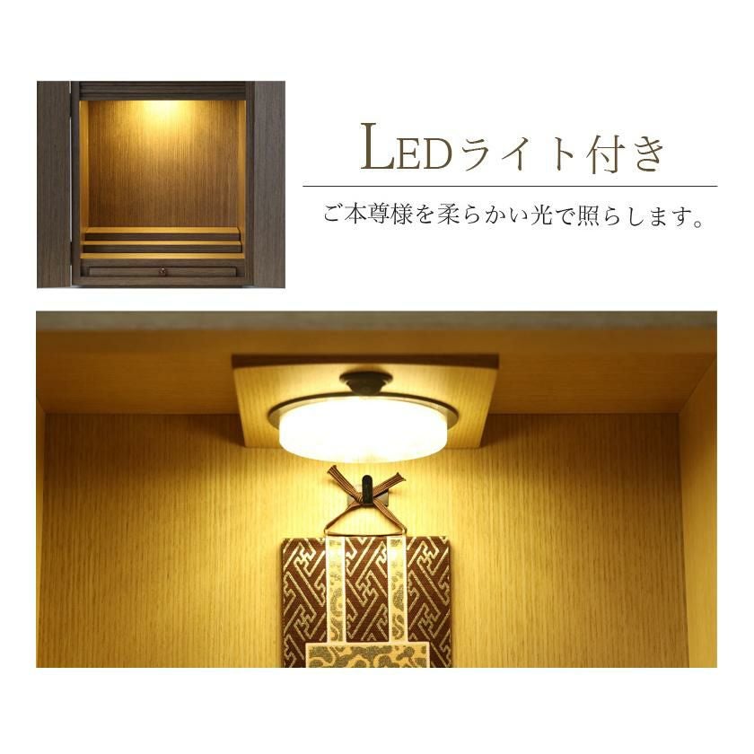 扉のないシンプルなデザインのお仏壇です。大きなお仏壇を置く場所がない方に、リビングの一角でおまいりしたい方に、お仏壇らしくないデザインをお探しの方におすすめです。