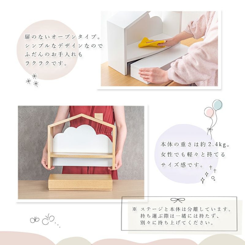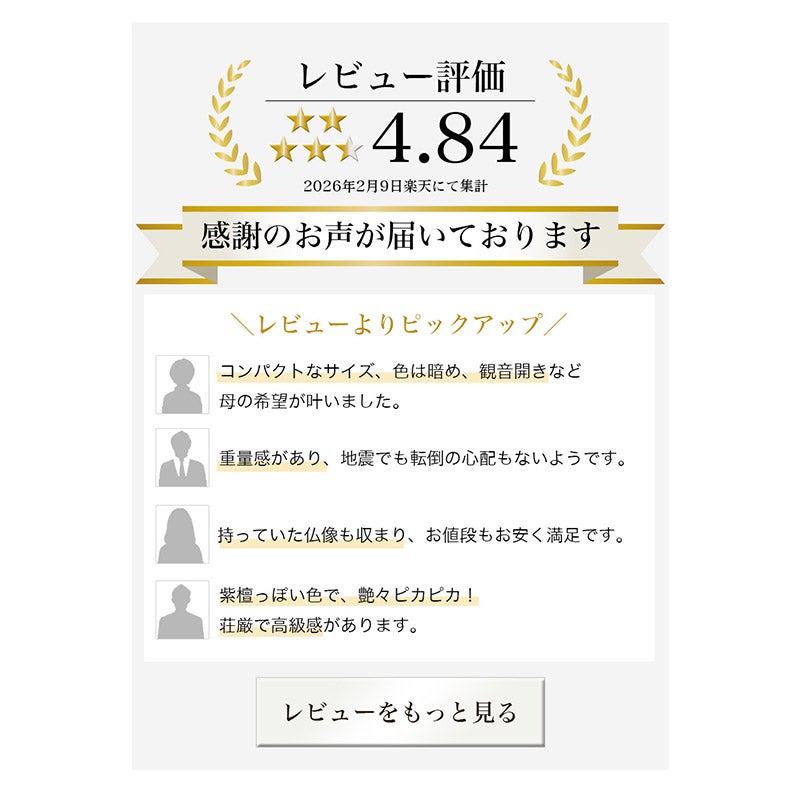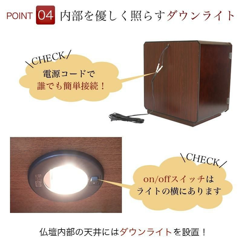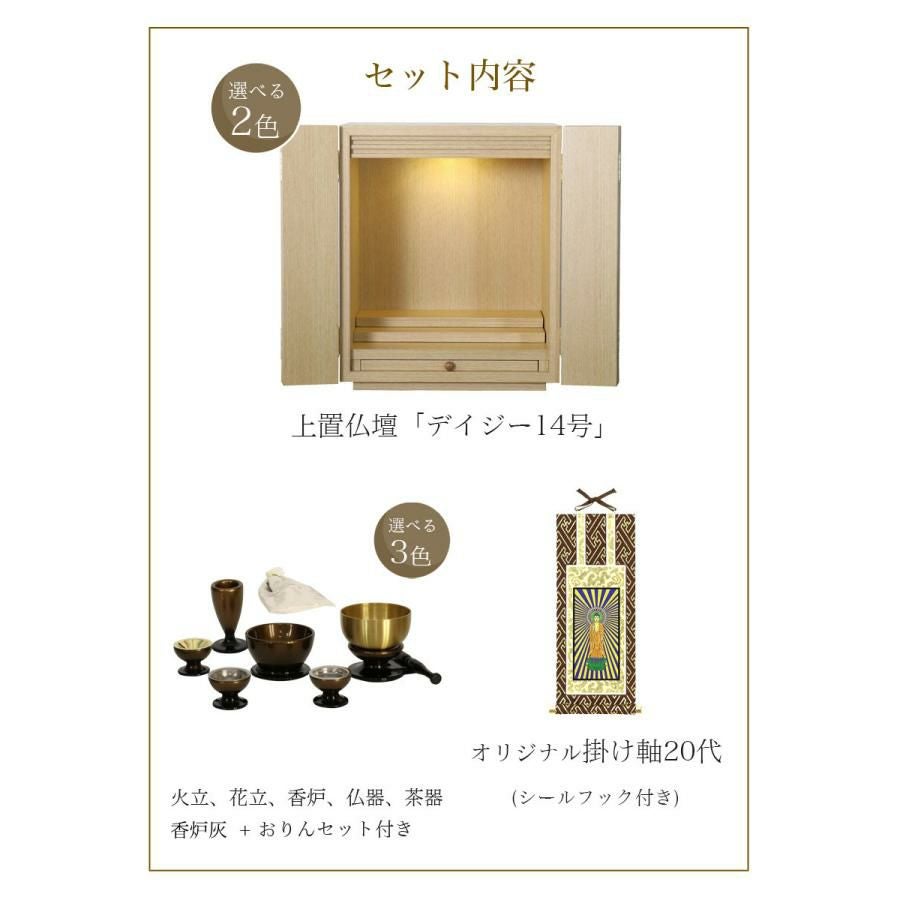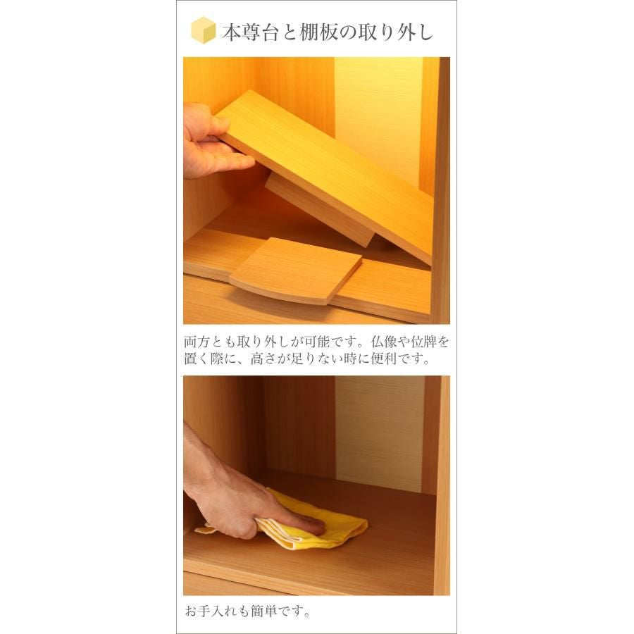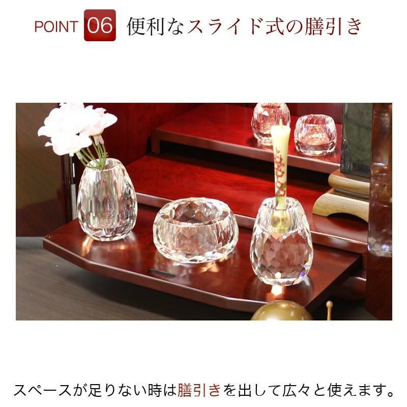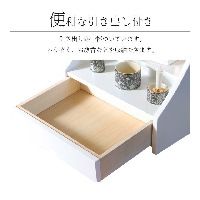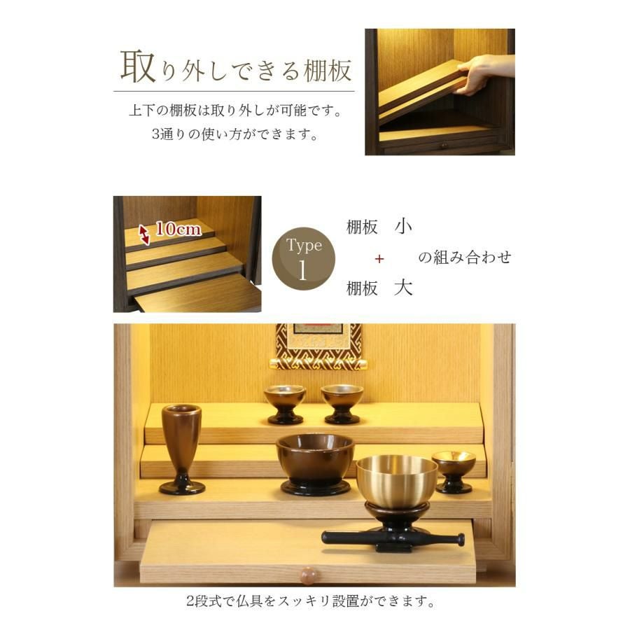 扉のないシンプルなデザインのお仏壇です。大きなお仏壇を置く場所がない方に、リビングの一角でおまいりしたい方に、お仏壇らしくないデザインをお探しの方におすすめです。
