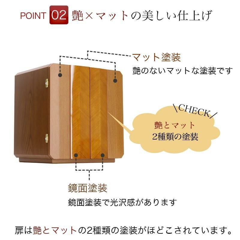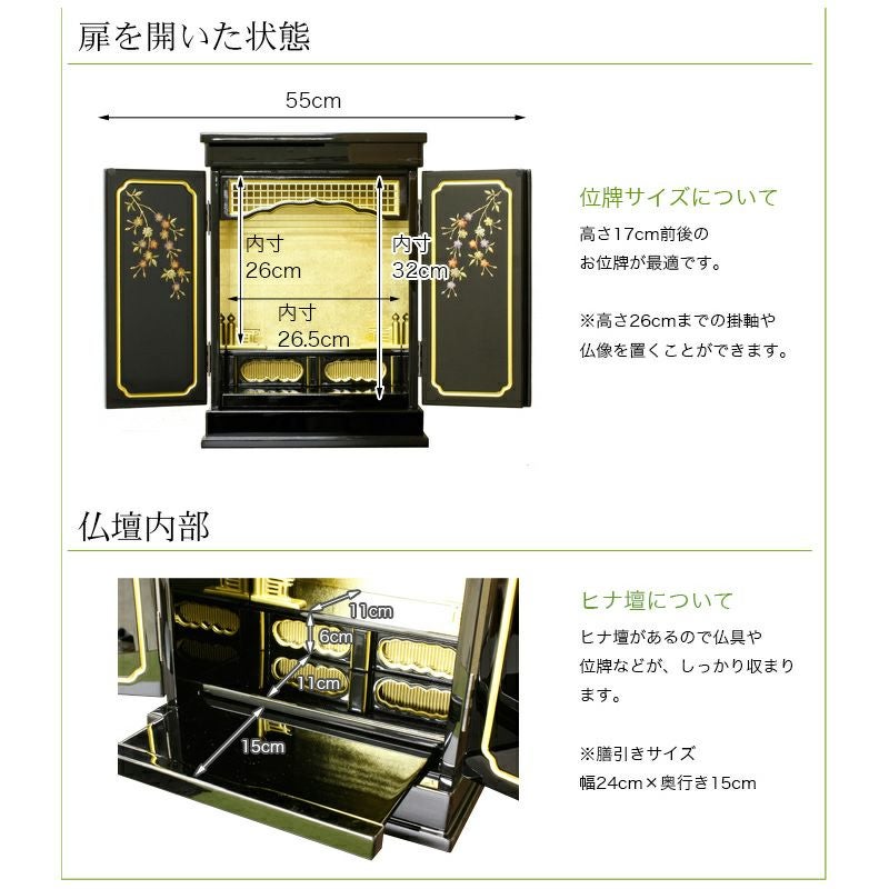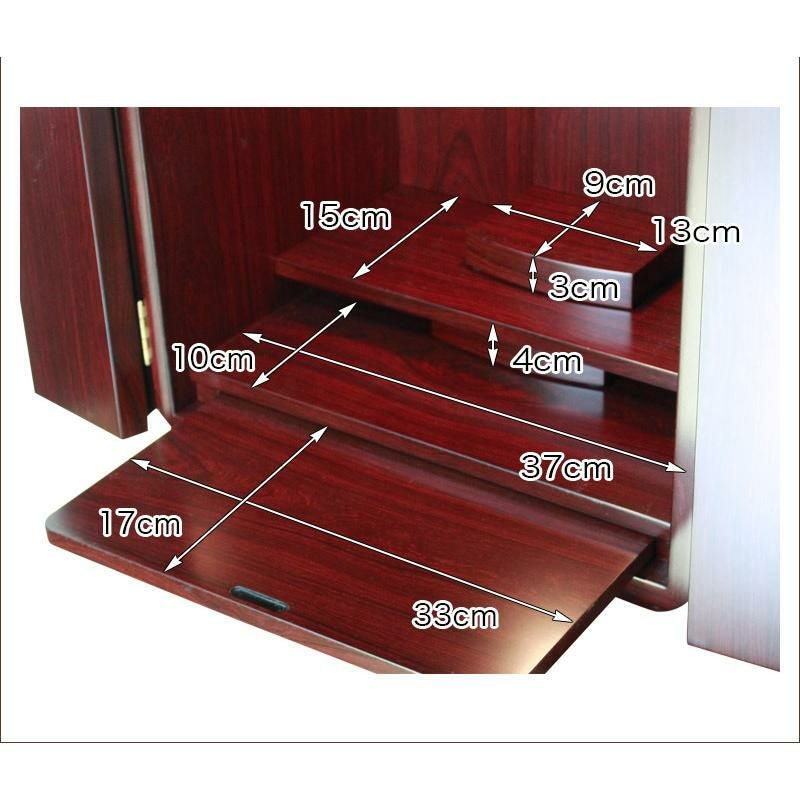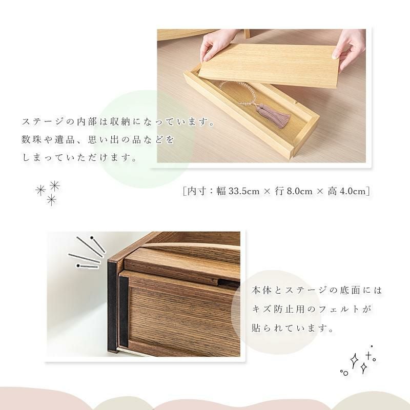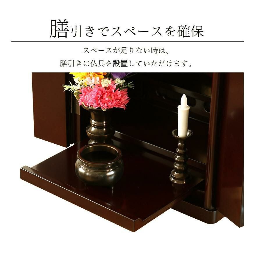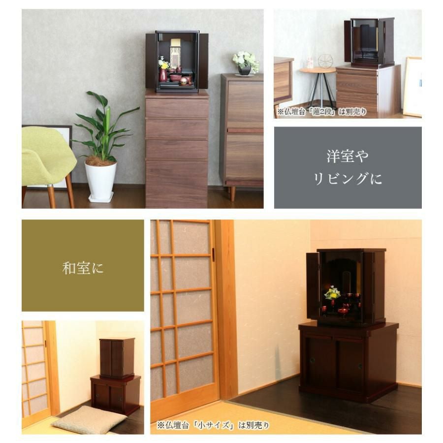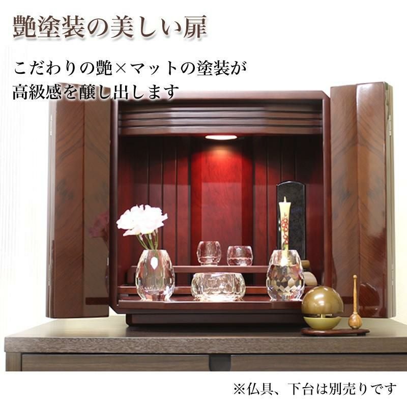 仏壇下台とセットになったお仏壇です。下台には仏具を収納していただけます。リビングや仏間にも設置可能です。上下の色を合わせたい方におすすめです。