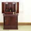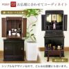 上置きタイプの仏壇にあわせやすく、お供え物や仏具も置ける格納式の膳引きも格納。