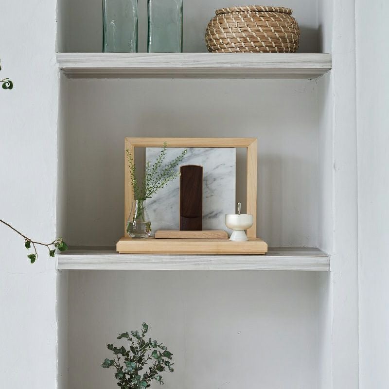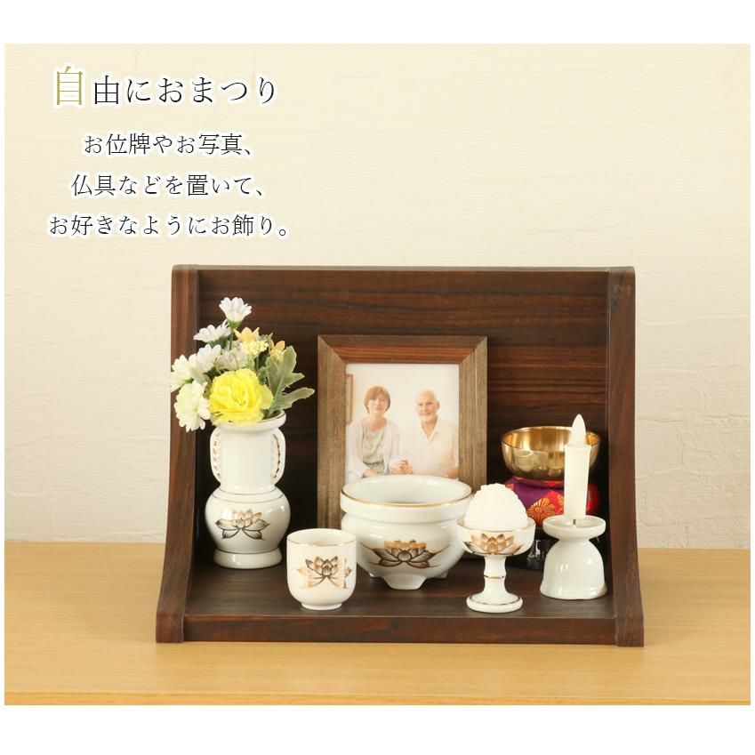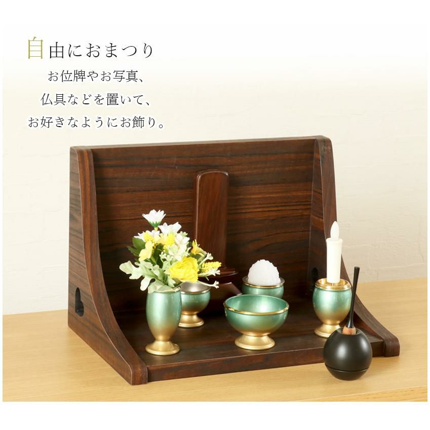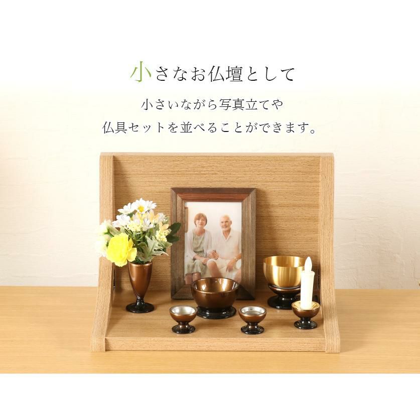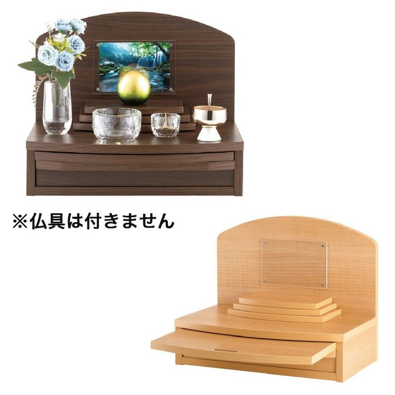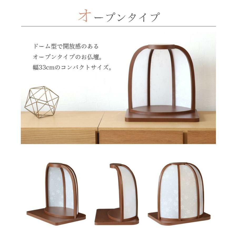 扉のないシンプルなデザインのお仏壇です。大きなお仏壇を置く場所がない方に、リビングの一角でおまいりしたい方に、お仏壇らしくないデザインをお探しの方におすすめです。