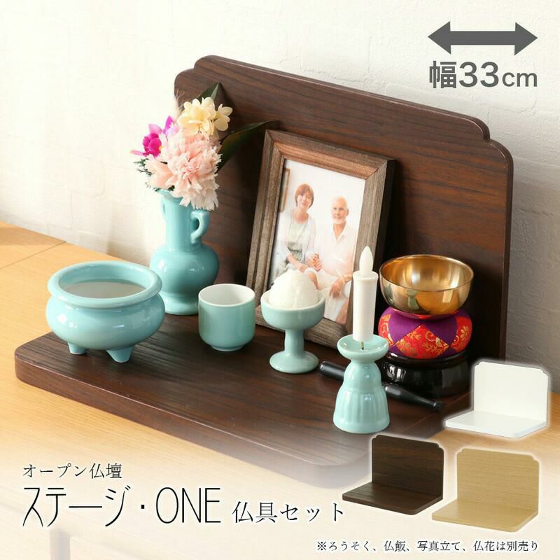 ミニ仏壇 オープン「ステージ・ONE」仏具セット 白 金蓮 or 青磁