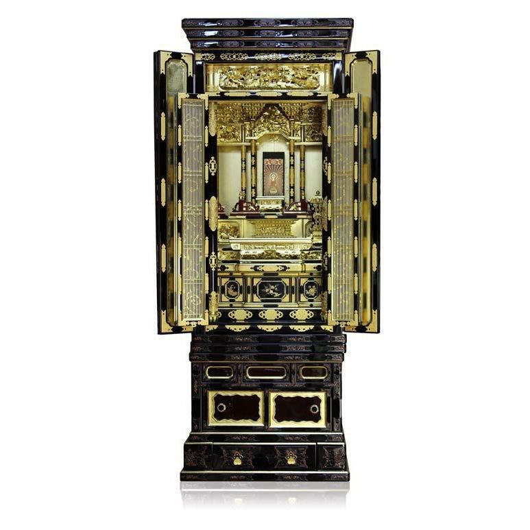 他の画像を見る 一人の材木商が日本一を夢見て製作した、唯一無二の金仏壇 金仏壇 43号 総開き本宮殿御拝造り 脇台付き 塗仏壇 蒔絵 名古屋壇 京仏壇 職人作り 黒漆 金箔 価格 ¥ 77,700,000 税込 カートに入れる お気に入りに登録する (0)
