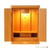 小さなサイズのお仏壇です。コンパクトサイズのため、棚の上などに設置できます。インテリアに調和するモダンなデザインのお仏壇もあります。仏壇専用の下台と組み合わせても設置できます。