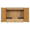 お仏壇内部にLED照明が付いています。棚の取り外しが可能。芯材に天然杢の薄板を貼って仕上げています日本国内で生産しています