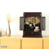 金の模様入り背板や美しい曲線の須弥壇、彫刻入りの勾欄など重厚感にあふれるデザインが特徴です。職人による美しい伝統型の唐木ミニ仏壇です。