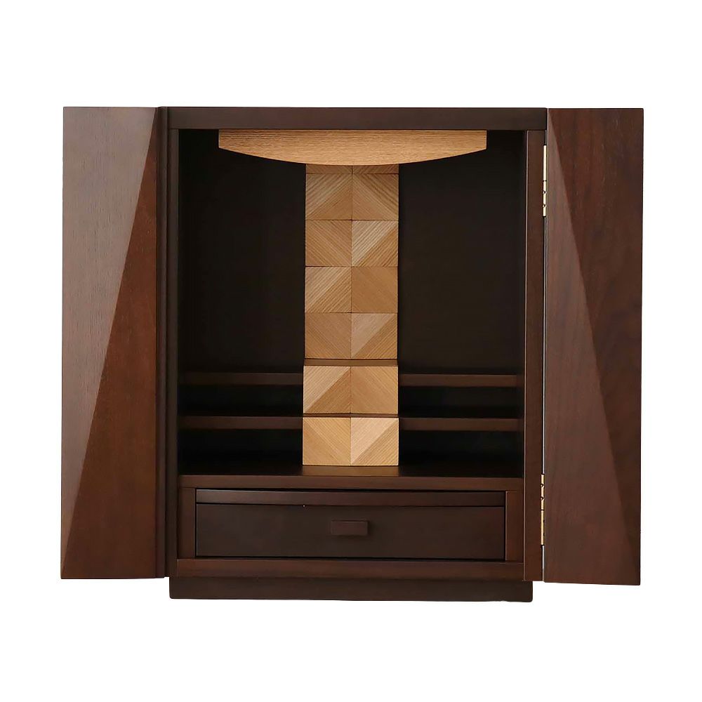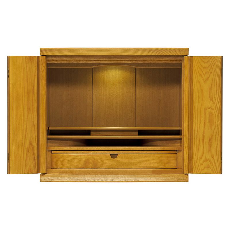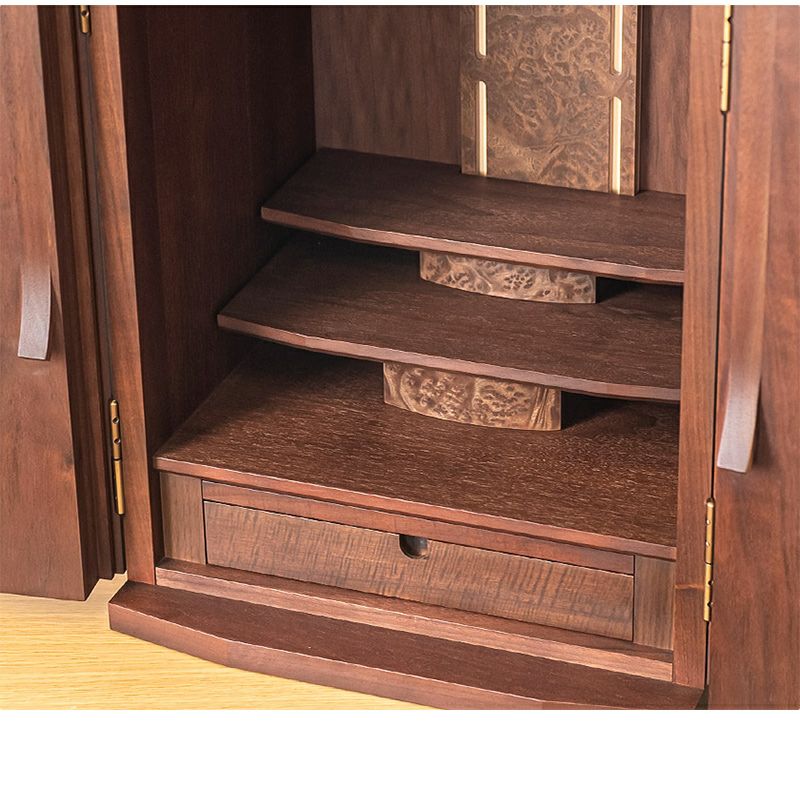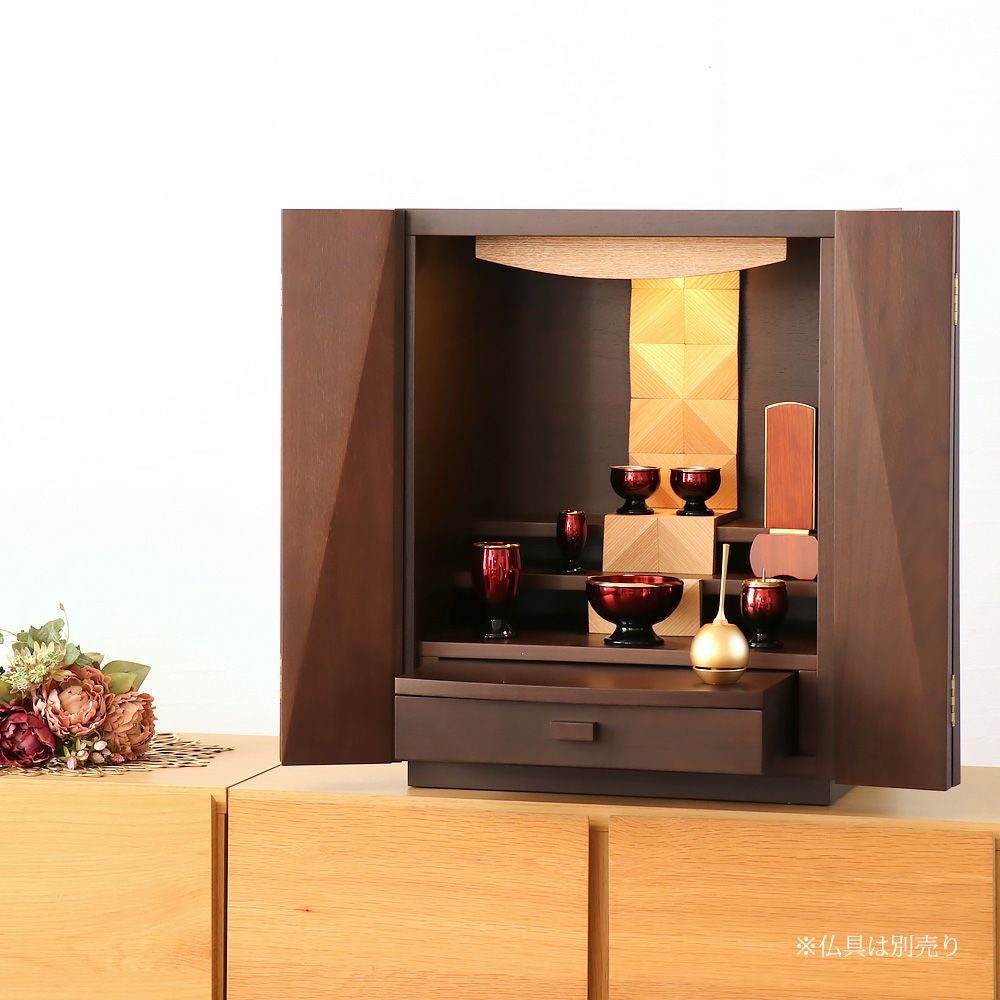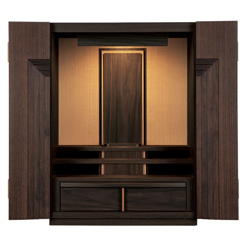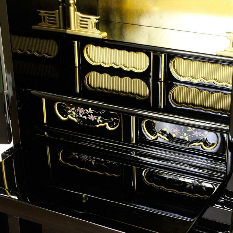 小さなサイズのお仏壇です。コンパクトサイズのため、棚の上などに設置できます。インテリアに調和するモダンなデザインのお仏壇もあります。仏壇専用の下台と組み合わせても設置できます。