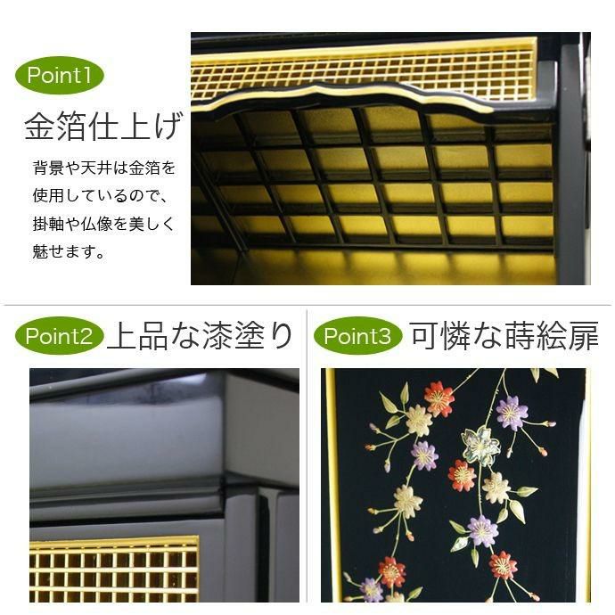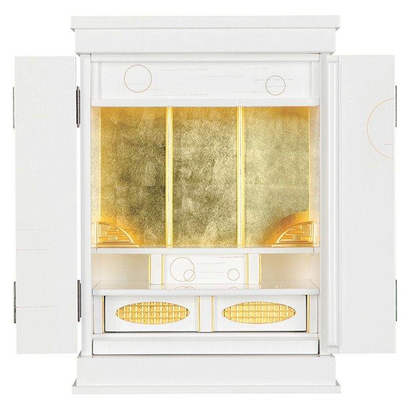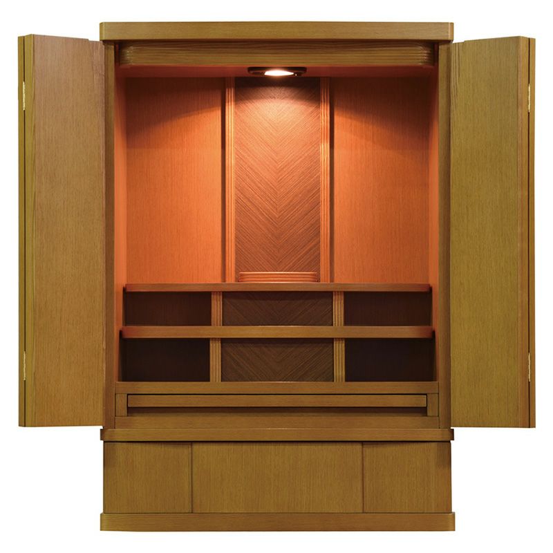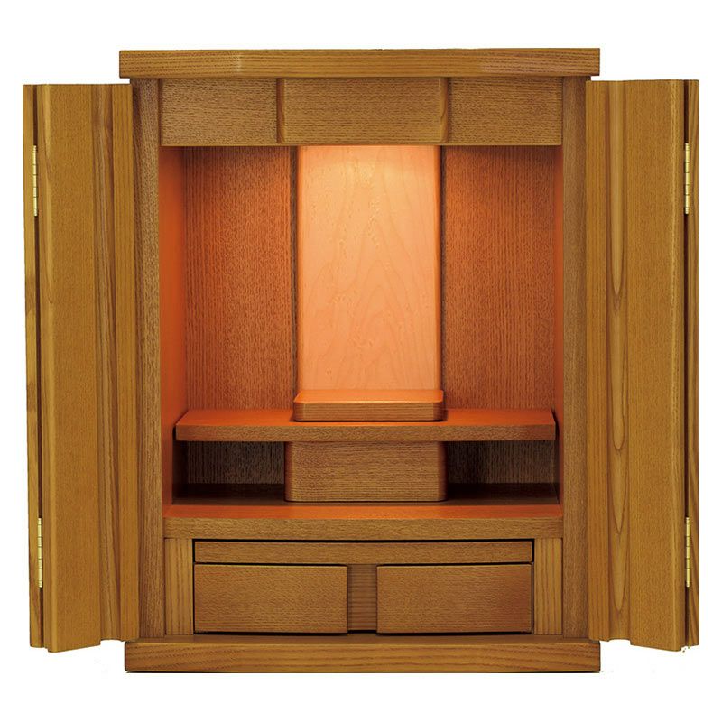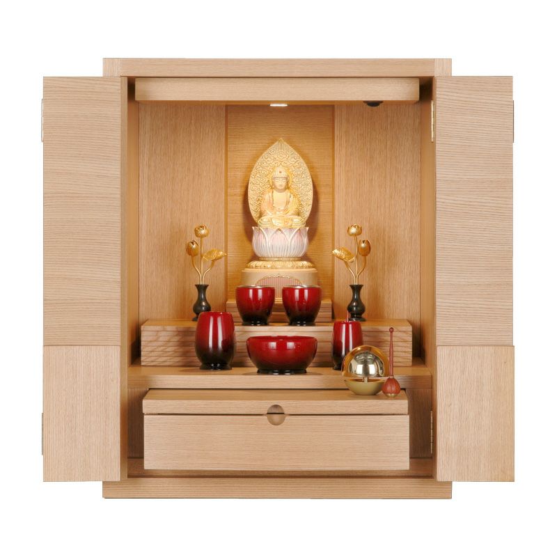小さなサイズのお仏壇です。コンパクトサイズのため、棚の上などに設置できます。インテリアに調和するモダンなデザインのお仏壇もあります。仏壇専用の下台と組み合わせても設置できます。