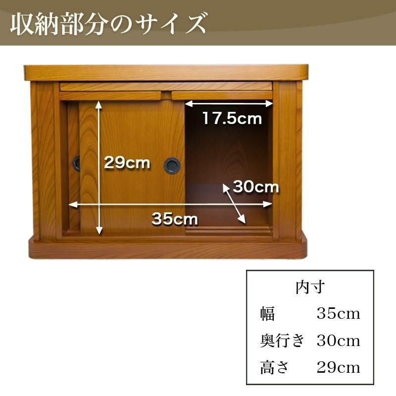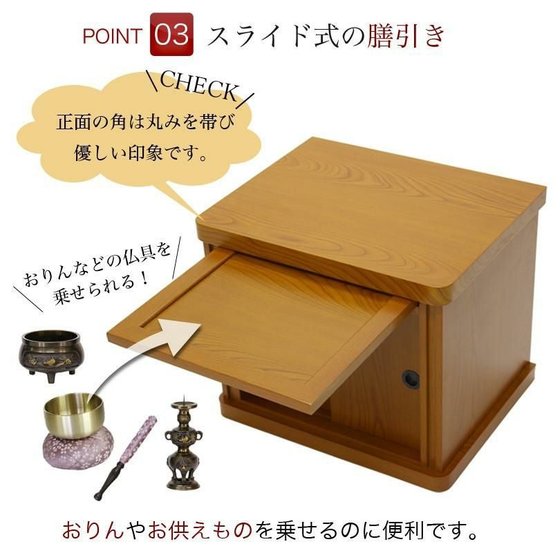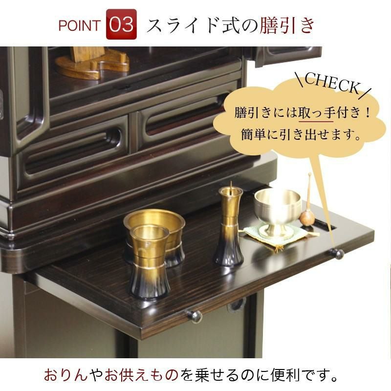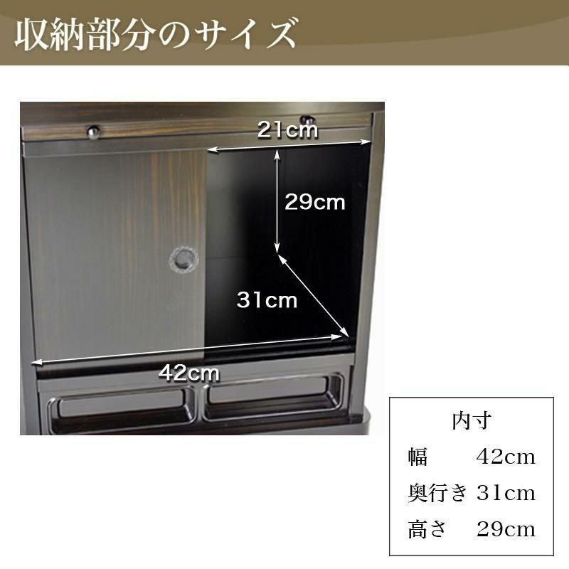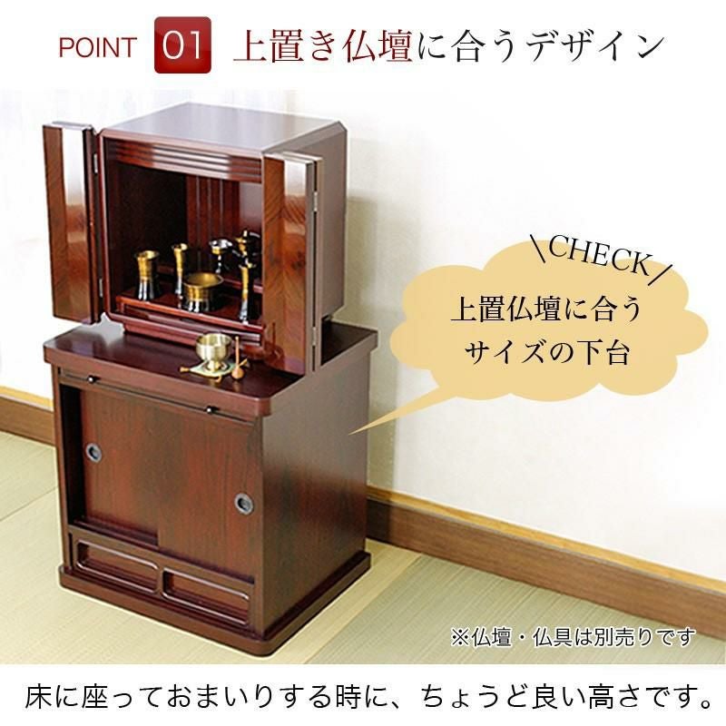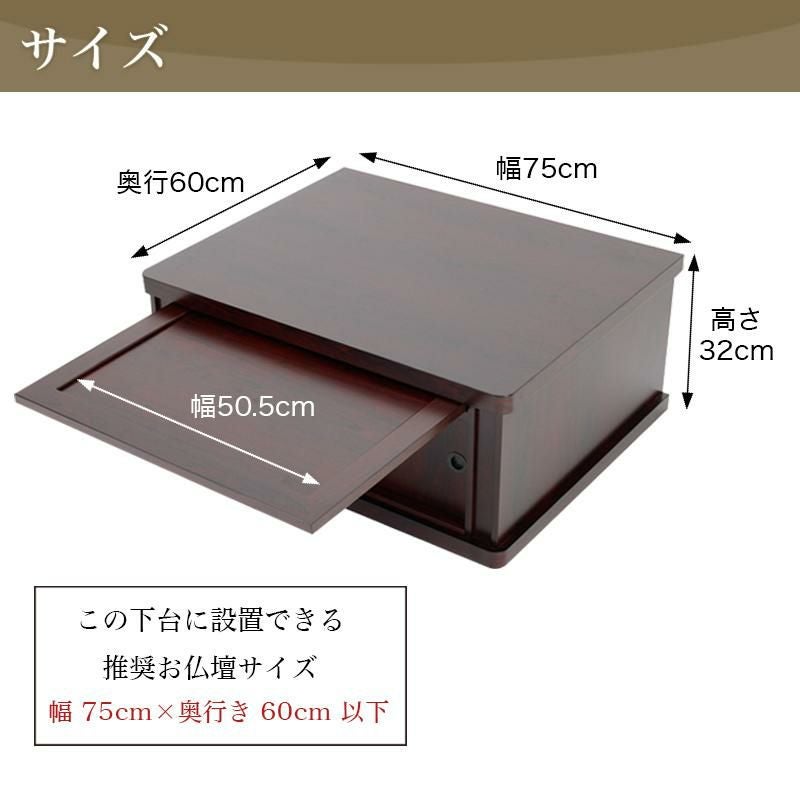 他の画像を見る 上置き仏壇台として 頑丈な造りで安心♪黒塗り木製の仏壇専用台です 仏壇 台 仏壇下台 仏壇置台 仏壇用黒塗り下台 「大サイズ」幅75cm 膳引き付上置き マンション リビング フローリング 引き戸 チェスト モダン 価格 ¥ 72,800 税込 在庫切れ 詳細を見る お気に入りに登録する (0)