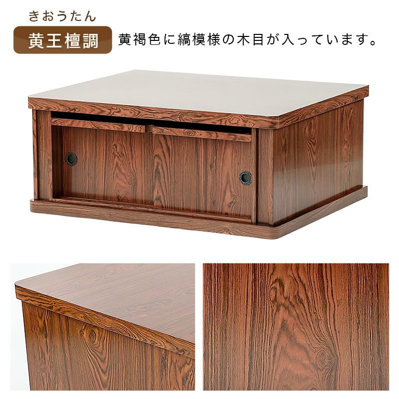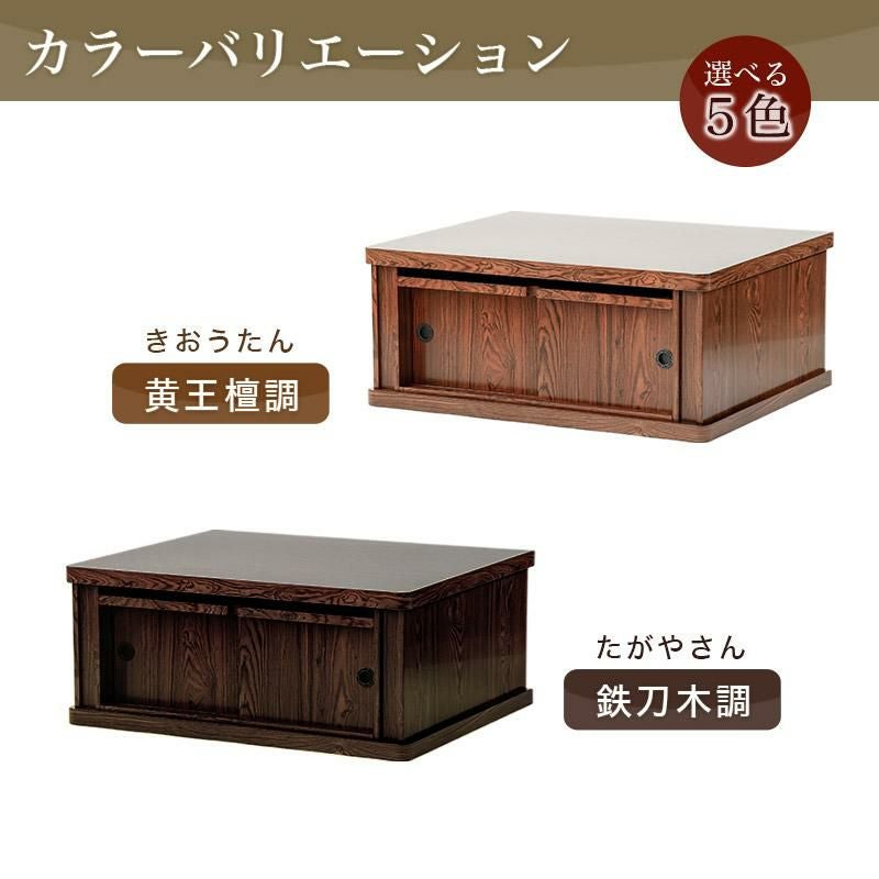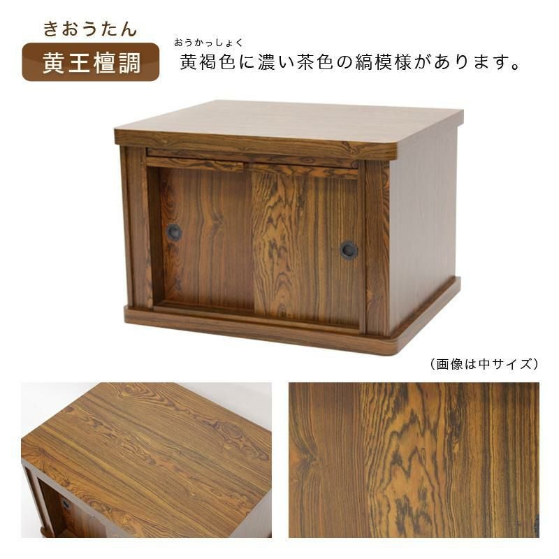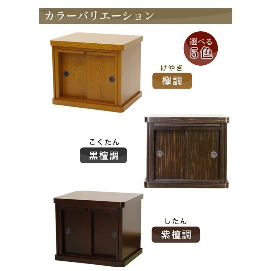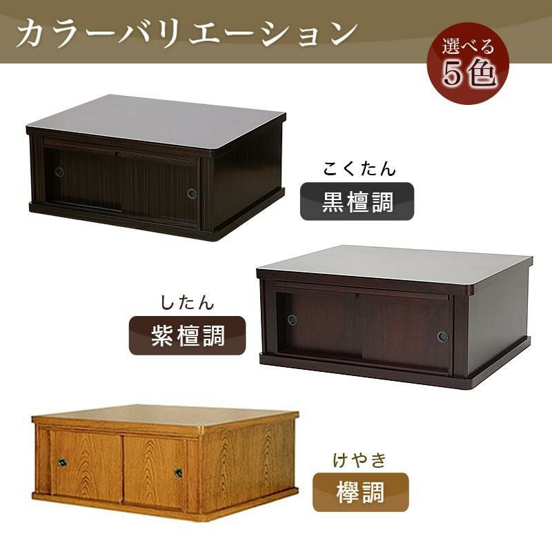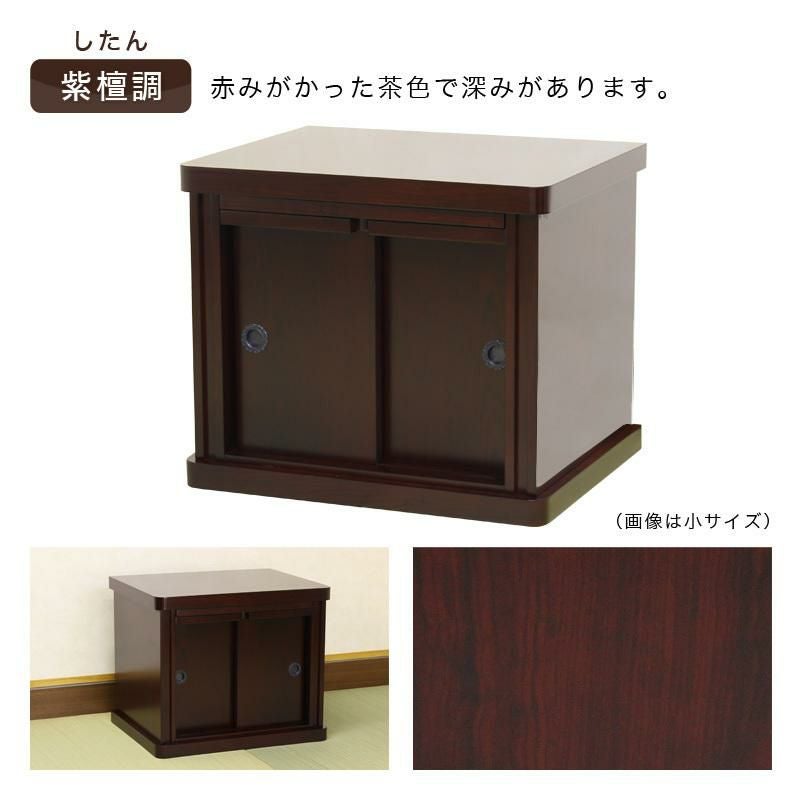 他の画像を見る 下台 欅調 黒檀調 紫檀調 黄王檀調 鉄刀木調 仏壇台 けやき こくたん したん きおうたん たがやさん 仏壇台 仏壇 台 5色から選べる膳引き仏壇専用台 「中サイズ」 幅60cm 下台 置台 チェスト モダン 価格 ¥ 43,800 税込 カートに入れる お気に入りに登録する (0)