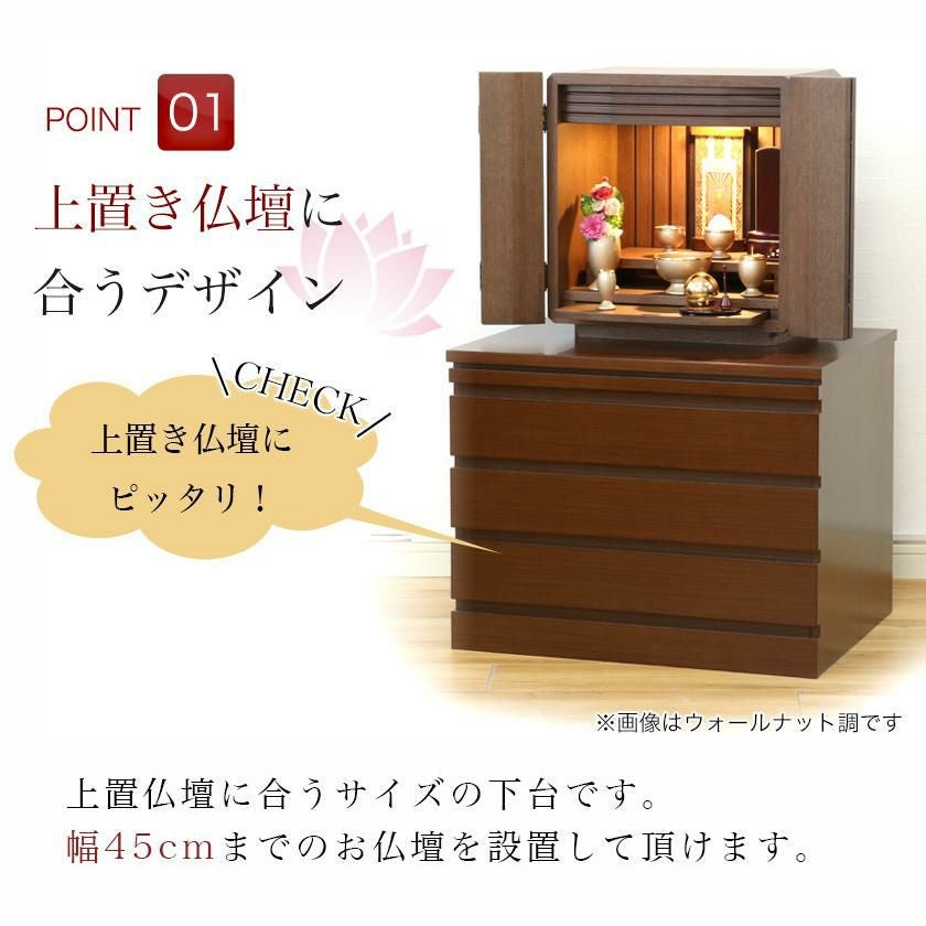 他の画像を見る 当店オリジナル 仏壇台 仏壇台 おしゃれ 仏壇下台 仏壇置台 「オリジナル下台 シオン」ウォールナット調・ナチュラル調・ホワイト調 モダン チェスト 価格 ¥ 19,800 税込 カートに入れる お気に入りに登録する 4.50 (2)