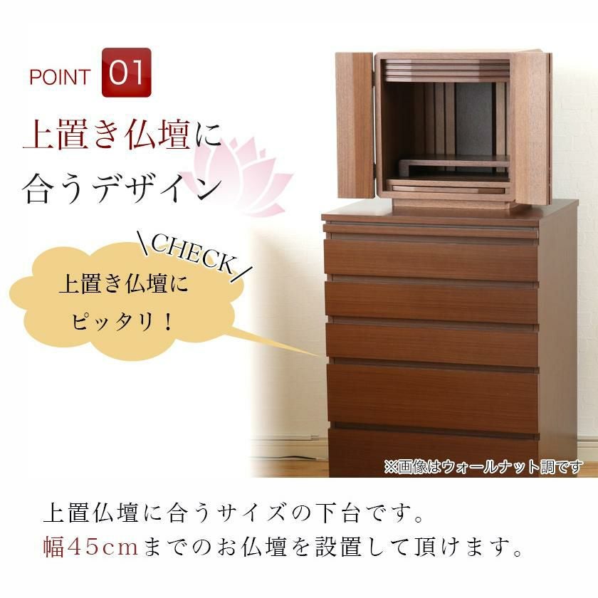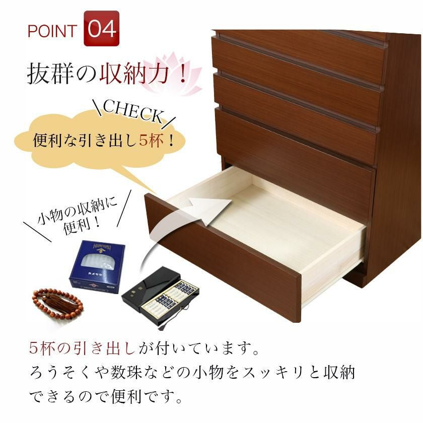 他の画像を見る 選べる3色 仏壇台 仏壇 台 仏壇下台 仏壇置台「蓮5段」幅60cm 仏壇専用台 引出し5段付き 上置き 五段引き出し 引き戸 チェスト モダン 価格 ¥ 39,800 税込 カートに入れる お気に入りに登録する (0)