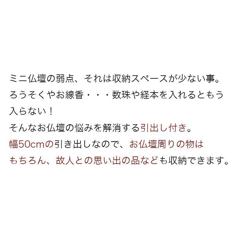 他の画像を見る 唐木仏壇にぴったりな引き出し付き仏壇台 下台 仏壇台 2色から選べる仏壇台 「小サイズ」紫檀調 黒檀調 幅50cm モダン 下台 置台 価格 ¥ 42,800 税込 カートに入れる お気に入りに登録する (0)