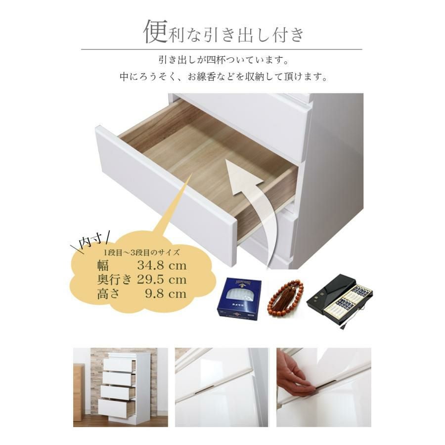 他の画像を見る ホワイトカラーの仏壇台 仏壇 台 仏壇下台 仏壇置台 「ホワイト4段」 幅43cm 上置き仏壇台 モダン 白色 チェストおしゃれ 価格 ¥ 37,800 税込 カートに入れる お気に入りに登録する (0)
