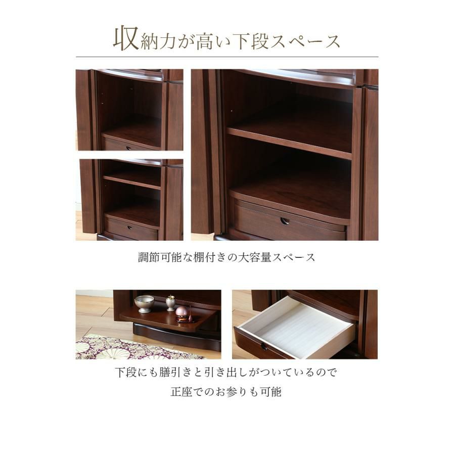 他の画像を見る 国産仏壇 モダン仏壇 「カポライト」 ウォールナット 15×46号 (v13-055-2)/家具調仏壇 モダン 床置き 台付き リビング 上下セット 価格 ¥ 904,470 税込 詳細を見る お気に入りに登録する (0)