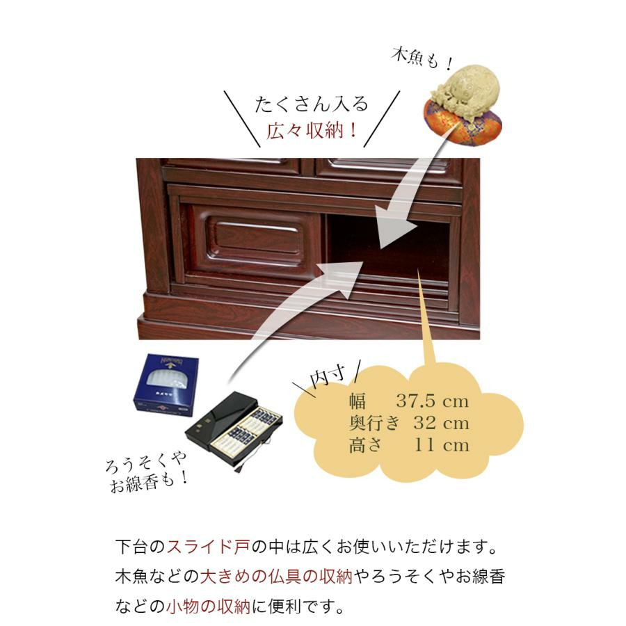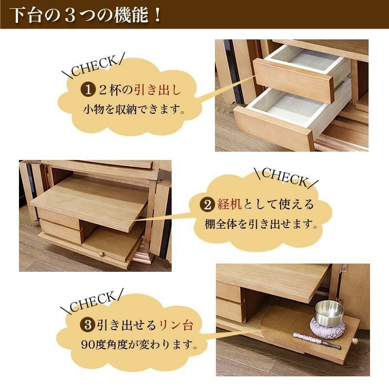 他の画像を見る 国産仏壇 「アナトマ」 桜 14×40号 (v13-024-1)/家具調 モダン 床置き 仏壇台付き リビング 上下セット 価格 ¥ 356,950 税込 詳細を見る お気に入りに登録する (0)