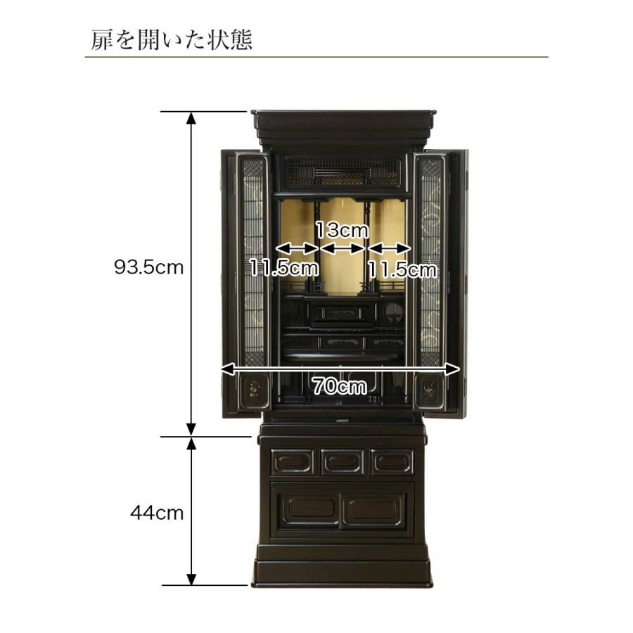 他の画像を見る 国産仏壇 「トリスカル」 黒檀 14×40号 (v13-005-3)/家具調 モダン 床置き 仏壇台付き リビング 上下セット 価格 ¥ 393,250 税込 詳細を見る お気に入りに登録する (0)