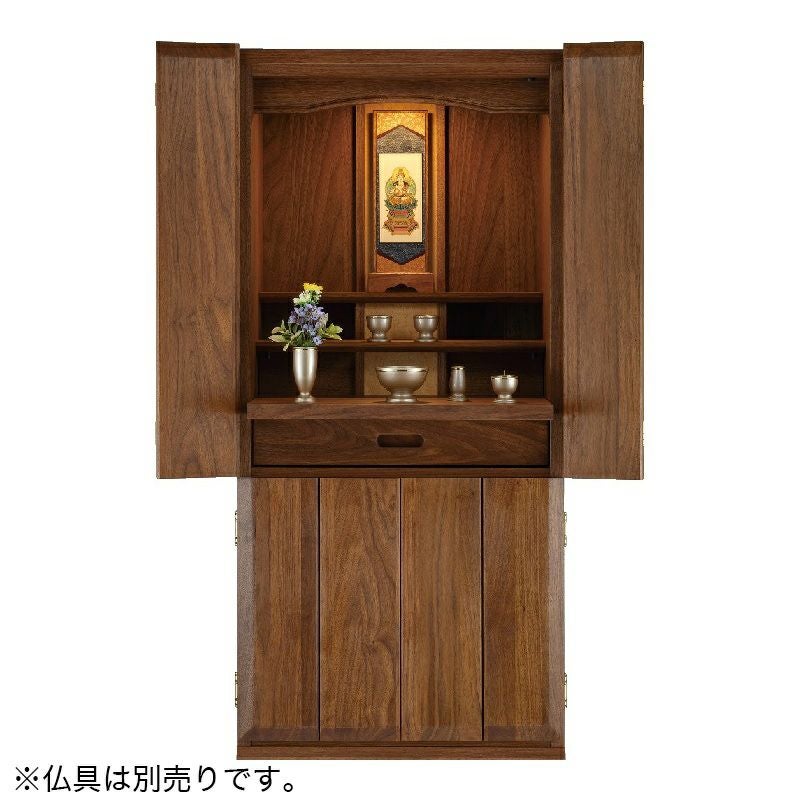 ローワイドタイプのお仏壇です 仏壇 モダン仏壇 「アレット2」 ウォールナット 18×40号 経机付き /家具調 床置き仏壇台付き リビング 上下セット 送料無料