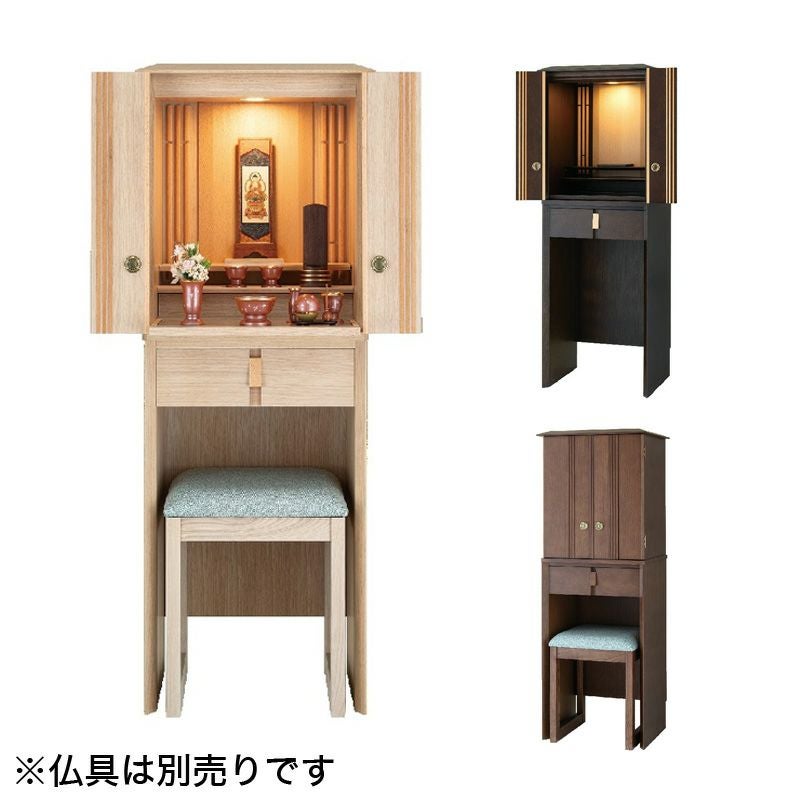 椅子が付属しているので、ドレッサーのようにお使いいただけます 仏壇 モダン仏壇 「応天」 17×45号 経机付き/家具調 床置き仏壇台付き リビング 上下セット 送料無料