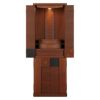 お仏壇内部にLED照明が付いています。芯材に天然杢の薄板を貼って仕上げています日本国内で生産しています