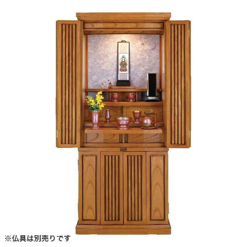 広葉樹の1 つである欅を使用した仏壇です 仏壇 モダン仏壇 「リズム2」欅 ケヤキ 16×38号 /家具調 床置き仏壇台付き リビング 上下セット 送料無料