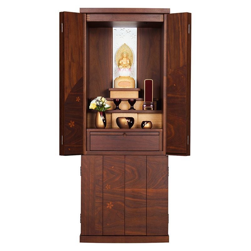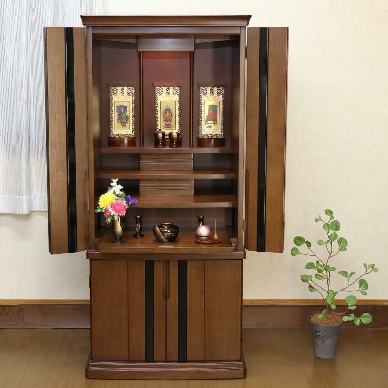 他の画像を見る 仏壇 「エミリュック」 ウォールナット 15×40号 (v13-020-3)/家具調仏壇 モダン仏壇 床置き 仏壇台付き リビング 上下セット 価格 ¥ 292,820 税込 詳細を見る お気に入りに登録する (0)
