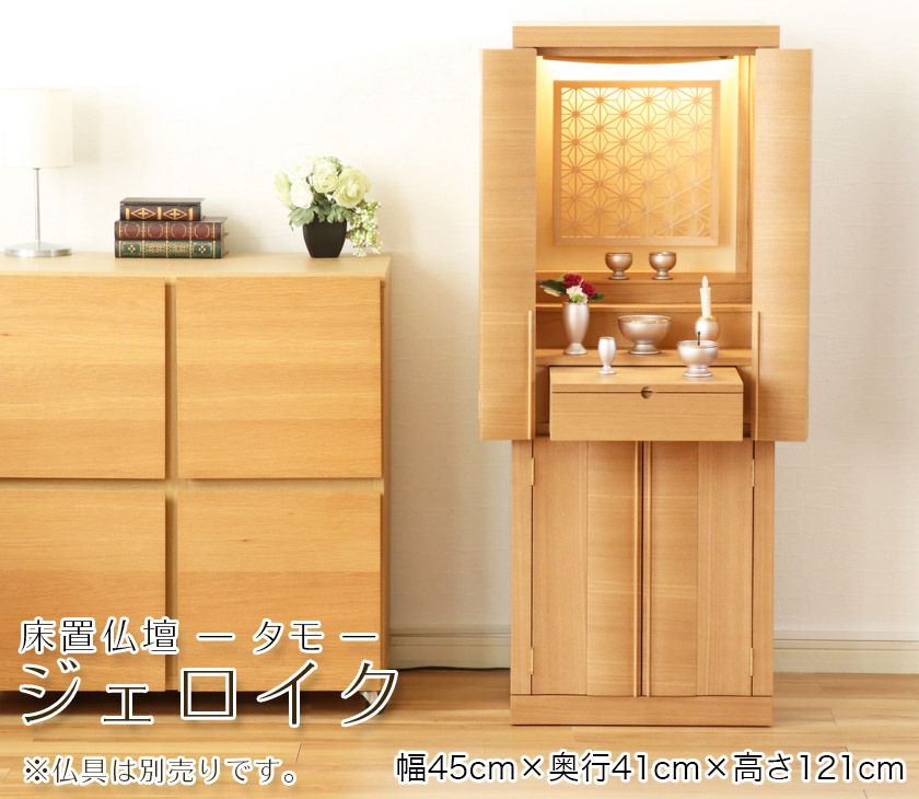 他の画像を見る 仏壇 「ジェロイク」 タモ 背板麻の葉組子 15×40号 (v13-026-1)/家具調仏壇 モダン仏壇 床置き 仏壇台付き リビング 上下セット 価格 ¥ 372,070 税込 詳細を見る お気に入りに登録する (0)