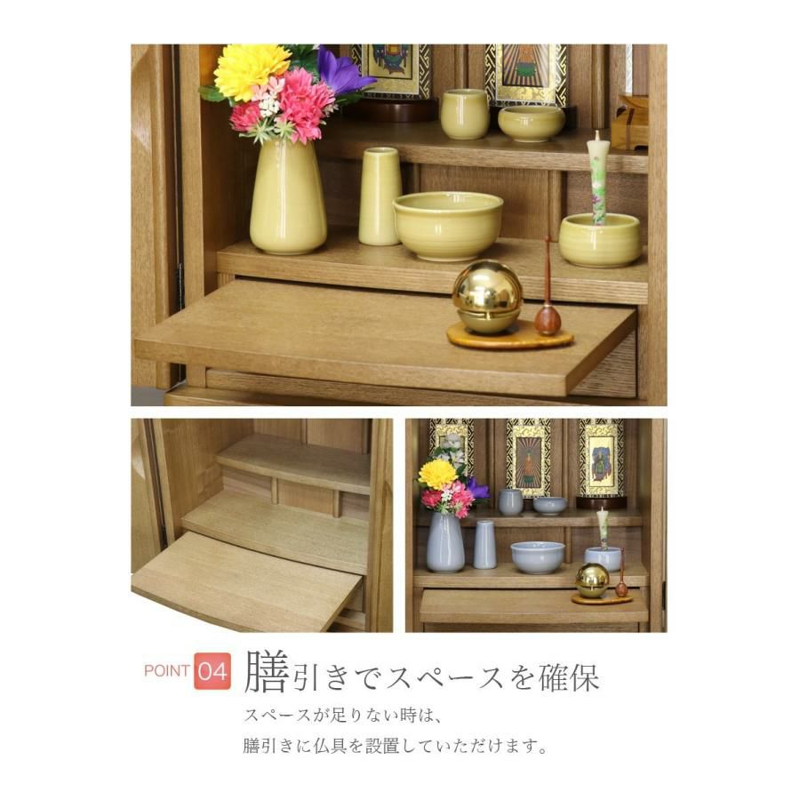 オープン仏壇 扉のないシンプルなデザインのお仏壇です。大きなお仏壇を置く場所がない方に、リビングの一角でおまいりしたい方に、お仏壇らしくないデザインをお探しの方におすすめです。