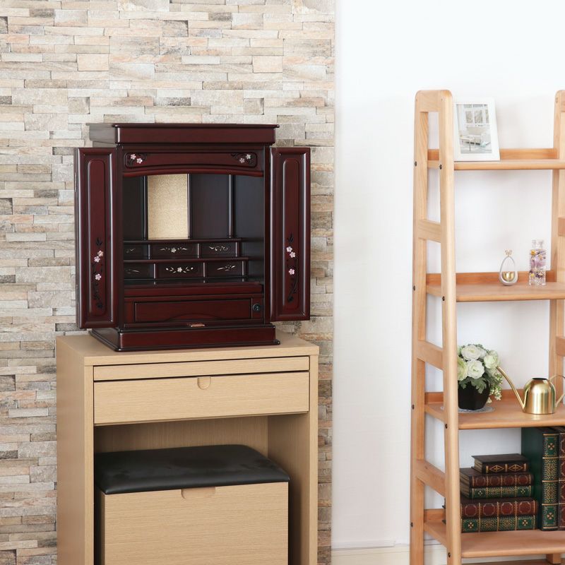 小さなサイズのお仏壇です。コンパクトサイズのため、棚の上などに設置できます。インテリアに調和するモダンなデザインのお仏壇もあります。仏壇専用の下台と組み合わせても設置できます。
