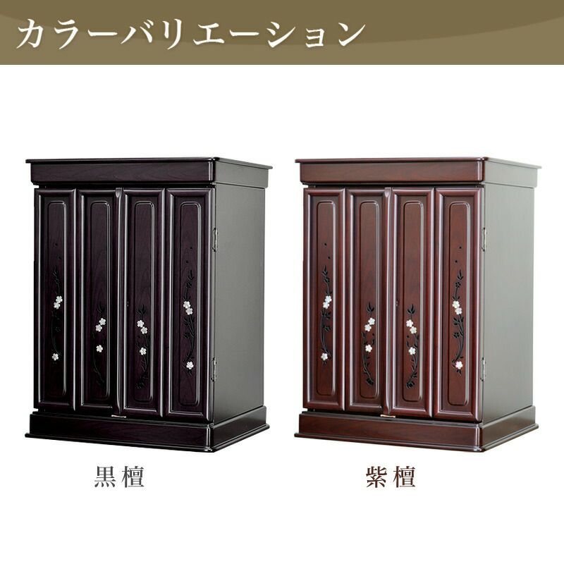 仏壇下台とセットになったお仏壇です。下台には仏具を収納していただけます。リビングや仏間にも設置可能です。上下の色を合わせたい方におすすめです。