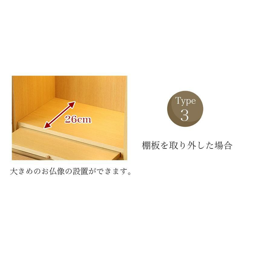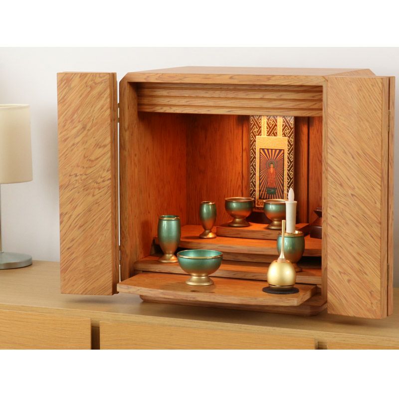 扉のないシンプルなデザインのお仏壇です。大きなお仏壇を置く場所がない方に、リビングの一角でおまいりしたい方に、お仏壇らしくないデザインをお探しの方におすすめです。