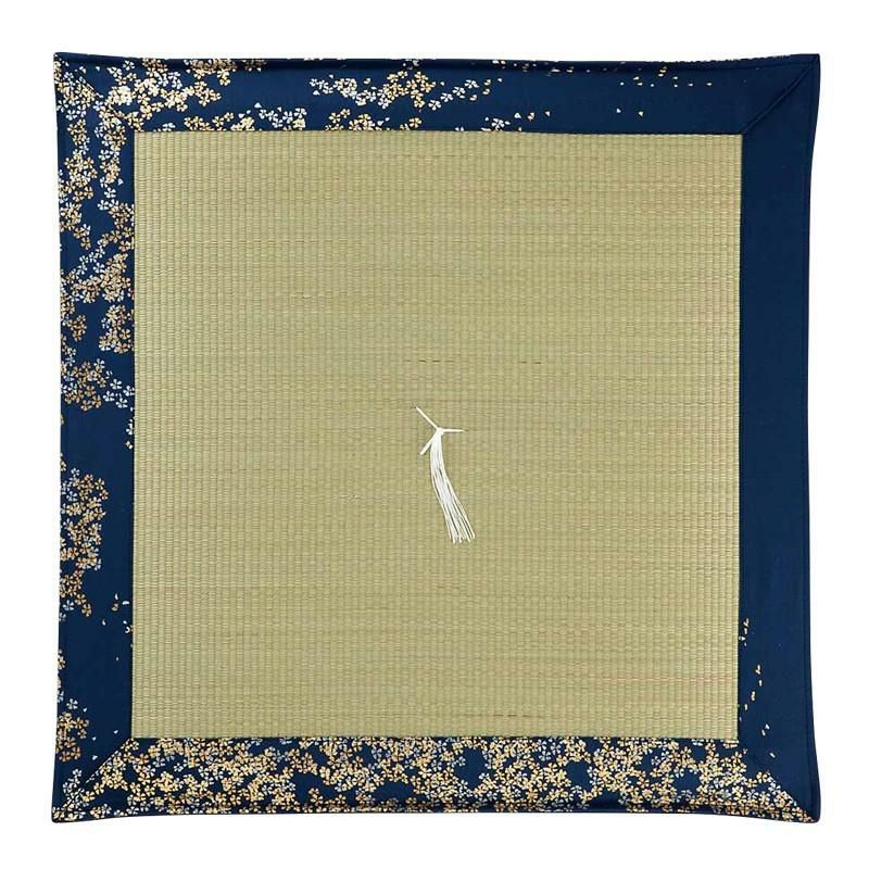 夏用座布団 天然い草使用 「金彩蘭草布団金銀桜・青」 No.20/仏間用 仏前 お寺様用 寺院用 法事 お坊さん お寺さん 住職