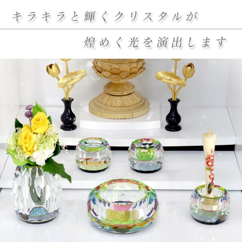 他の画像を見る おしゃれ モダン仏具 クリスタルガラス製 小型仏壇に 仏具 セット クリスタルガラス製 「レインボー」 5具足 2.5寸 モダン 仏壇 花立て 香炉 火立て 燭台 仏器 湯呑 透明 価格 ¥ 14,800 税込 カートに入れる お気に入りに登録する (0)