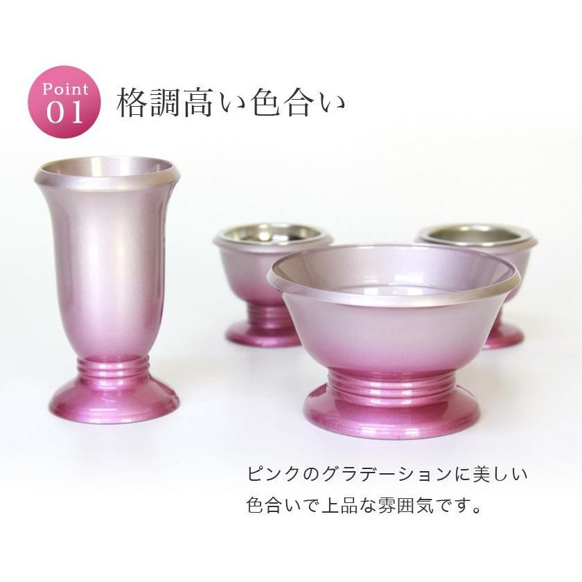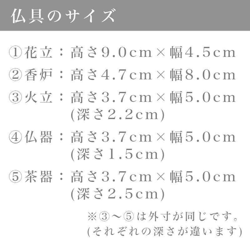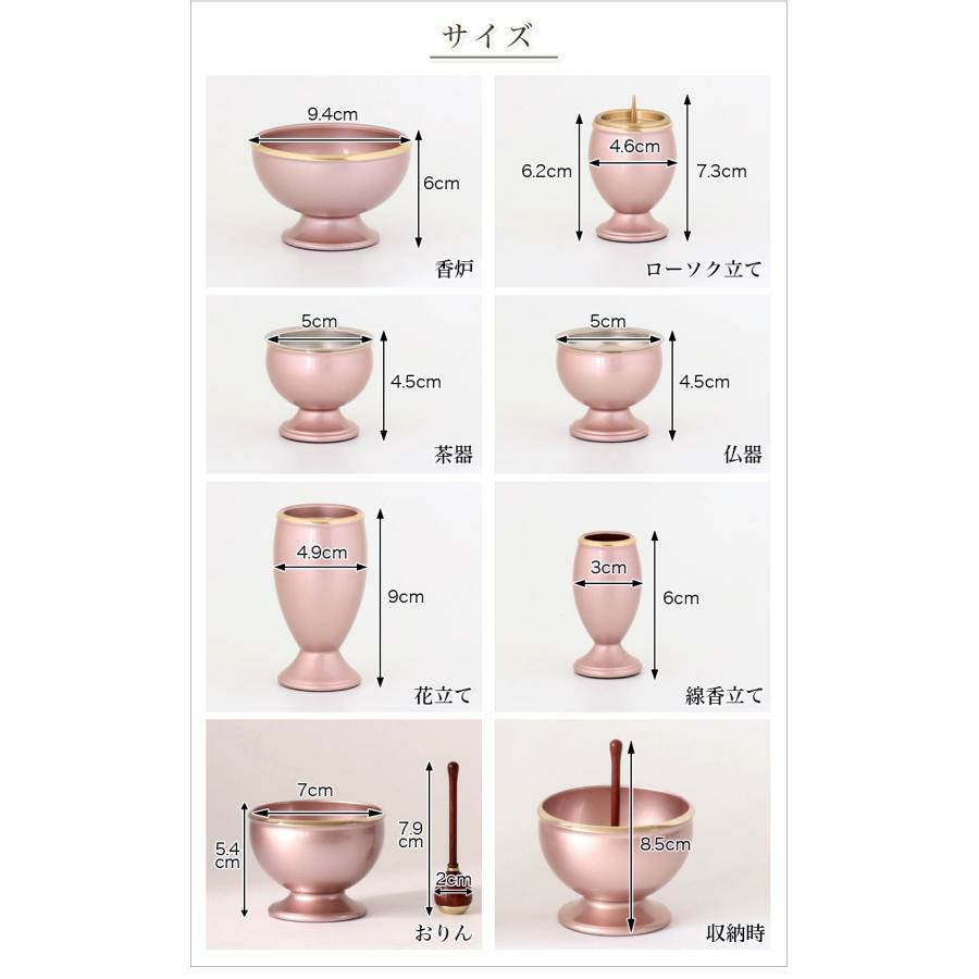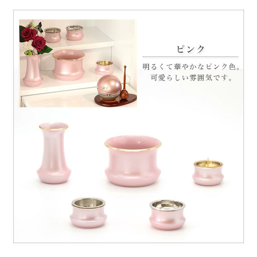 他の画像を見る 美濃焼 5具足 仏具セット 美濃焼仏具「やわらぎ・小サイズ」 5具足セトモノ モダン 仏壇 花立て 香炉 火立て 燭台 仏器 茶器 ピンク 価格 ¥ 8,240 税込 カートに入れる お気に入りに登録する (0)