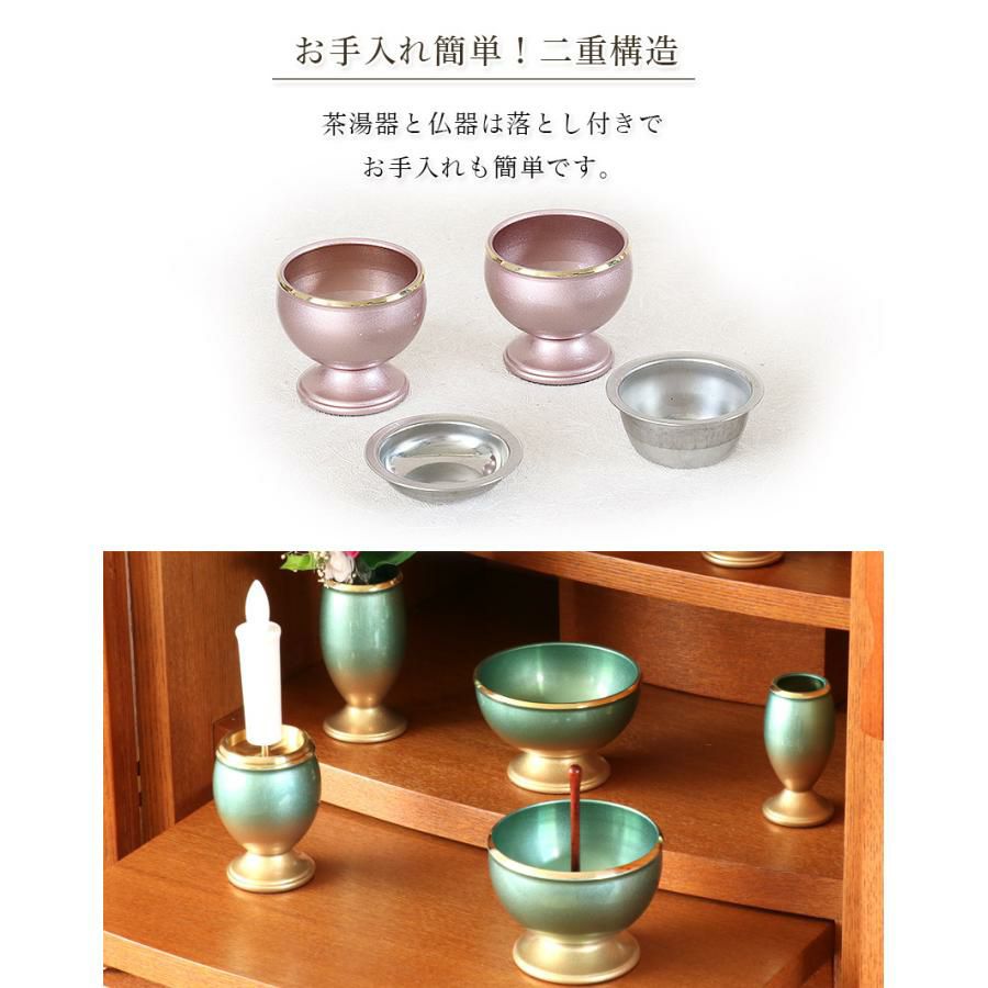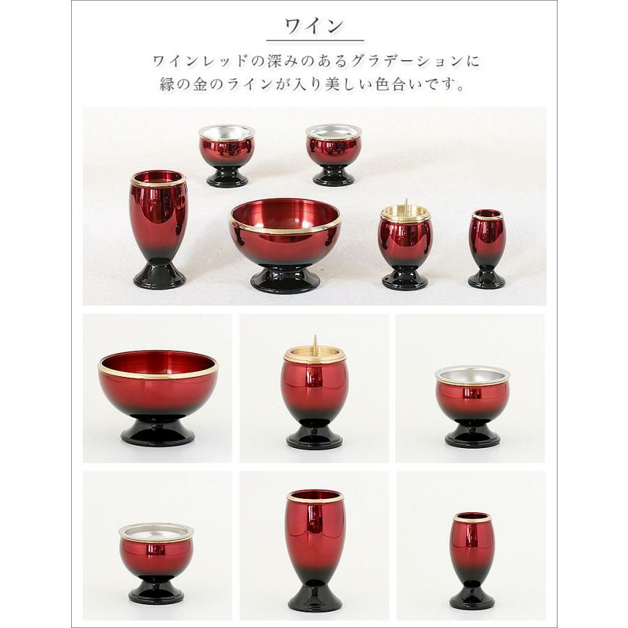 他の画像を見る 選べる5色 ワイン ブルー グリーン 琥珀 ピンク 仏具 セット 家具調仏具 6点セット「ビアンカ」3.0寸 6具足 モダン 香炉 火立て 花立て 仏器 茶器 線香差し 3寸 価格 ¥ 27,800 税込 詳細を見る お気に入りに登録する (0)