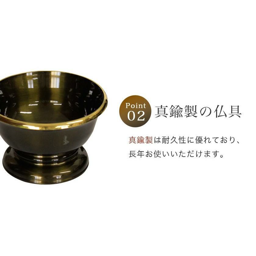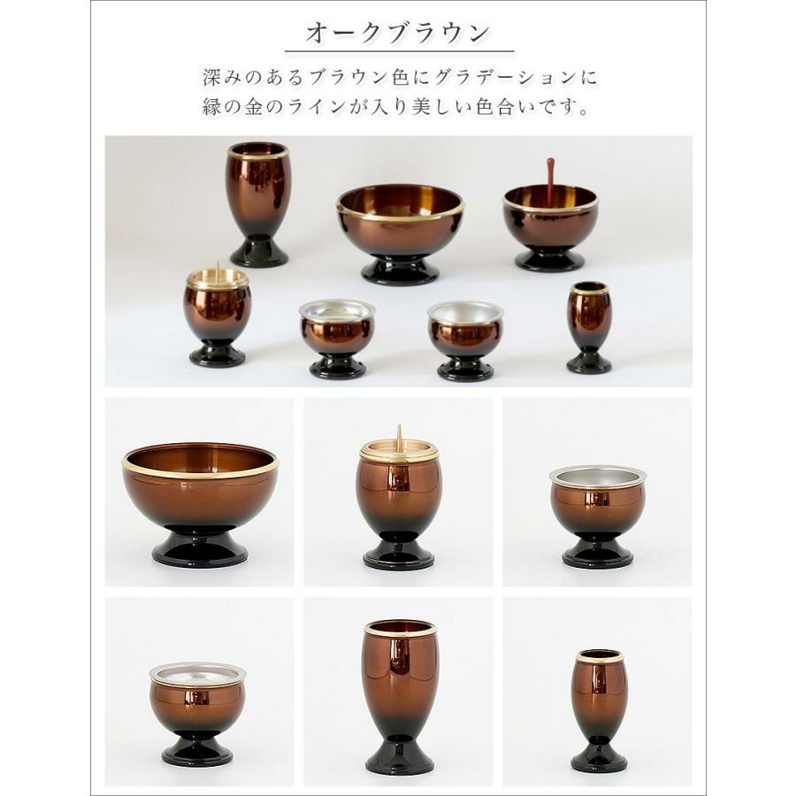 他の画像を見る 選べる5色 光沢感のある仏具6点+おりんセット 仏具6点+おりんセット 真鍮製仏具「流星セット」3寸 六具足 モダン りん棒 香炉 火立て 茶器 仏器 花立て 線香立て 価格 ¥ 23,800 税込 カートに入れる お気に入りに登録する 5.00 (1)