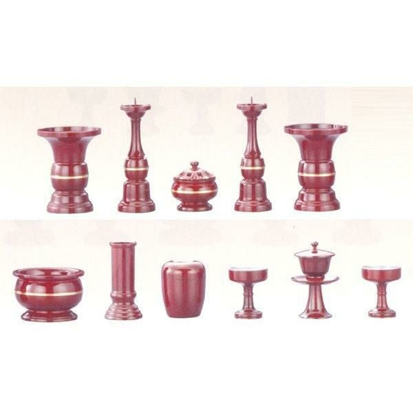仏具 セット 【十一具足】 天祥型 金筋入朱鍋色 3寸/高級 仏壇仏具
